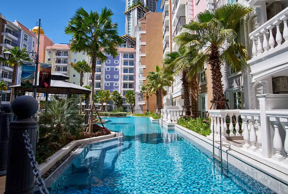 Seven Seas Cote d’Azur creates the spectacular French Mediterranean right here in Pattaya Thailand. There have six low-rise buildings that provide a true South of France flavor. Nice, Cannes, Monaco, Marseilles, Monte Carlo, and Montpelier. Complete with fitness room, sauna, games room, library/internet center & banquet – function hall.