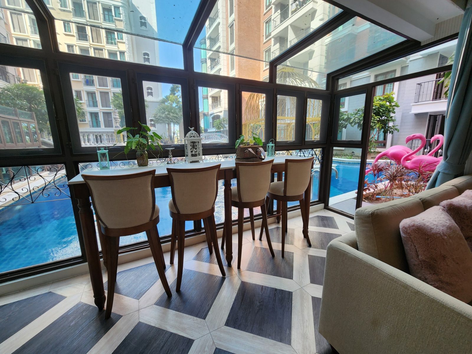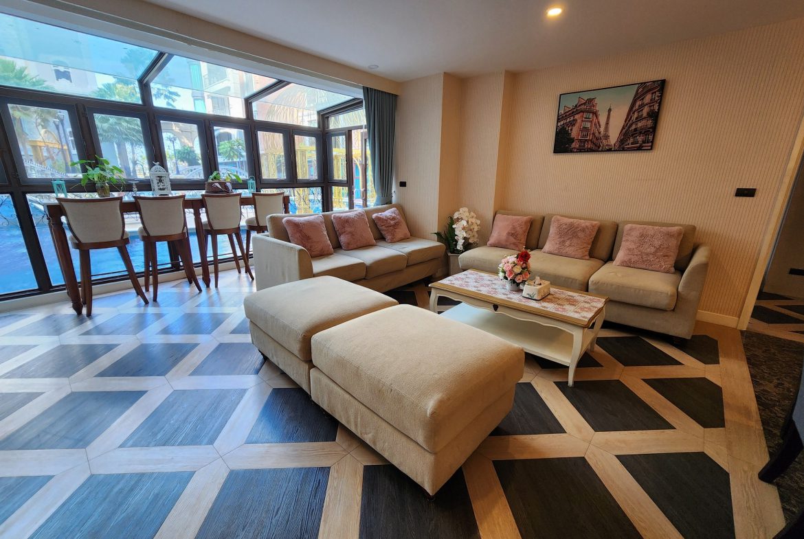 Espana Condo Resort Pattaya offers a luxurious 2-bedroom, 2-bathroom condo for rent, perfect for those seeking comfort and style. This fully furnished unit spans approximately 76 square meters and is located on the fourth floor, providing captivating pool views. The condo features modern amenities, including a communal swimming pool, fitness center, sauna, and 24-hour security. Situated near Jomtien Beach, it combines the convenience of urban living with the tranquility of resort-style relaxation. Ideal for long-term rental, this property is a great choice for enjoying Pattaya’s vibrant lifestyle.