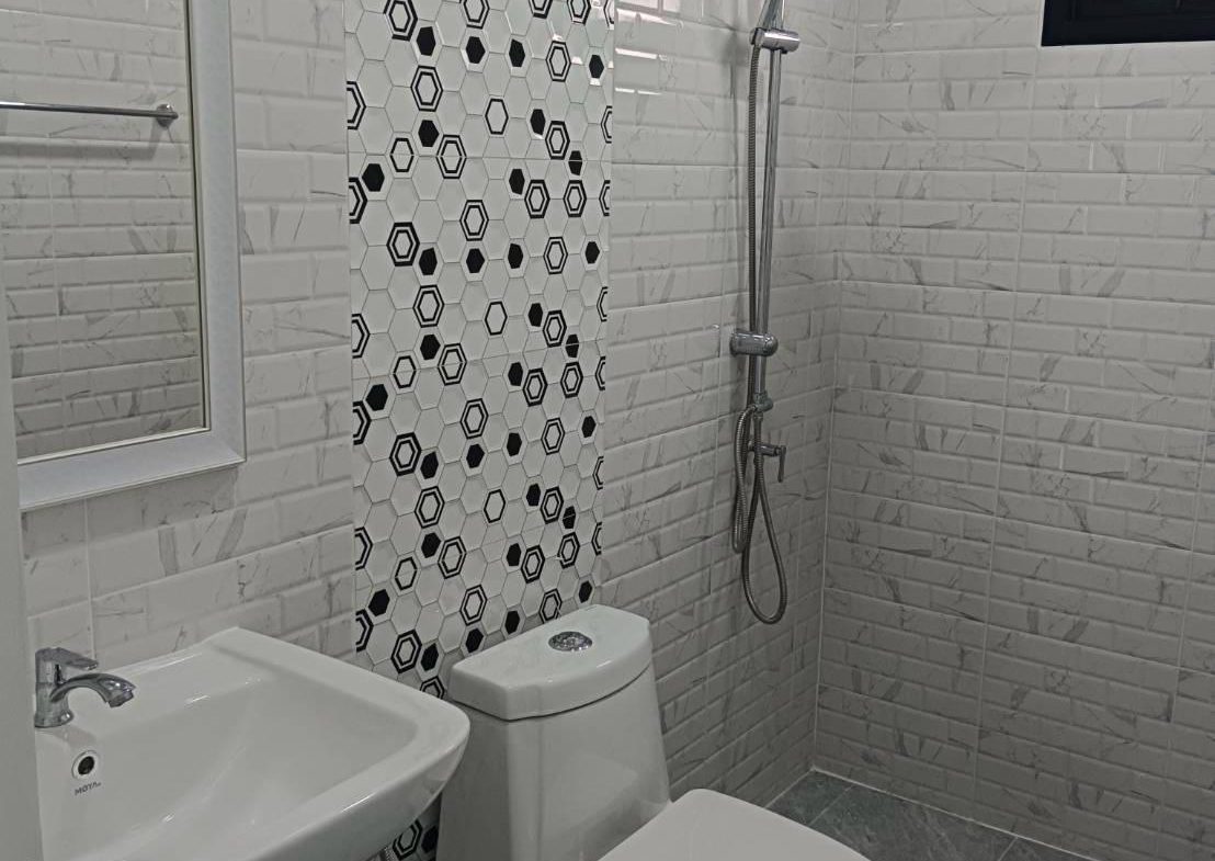 A new one-story house, 3 bedrooms, 2 bathrooms, close to the community. For families needing a quiet, good atmosphere, the kitchen has an electric stove, hood, and kitchen counter.