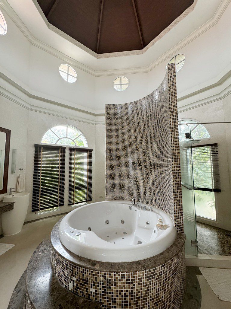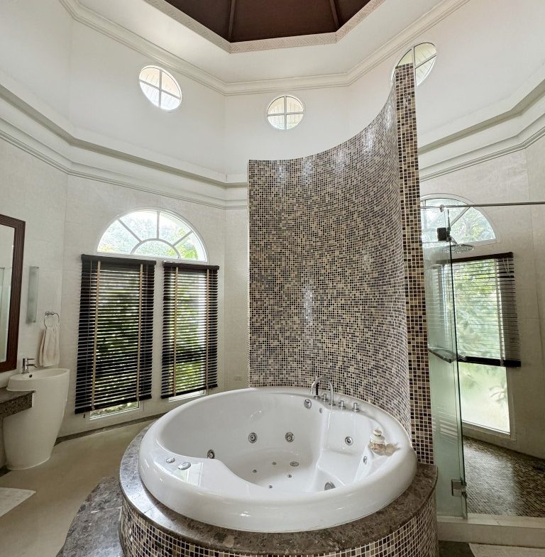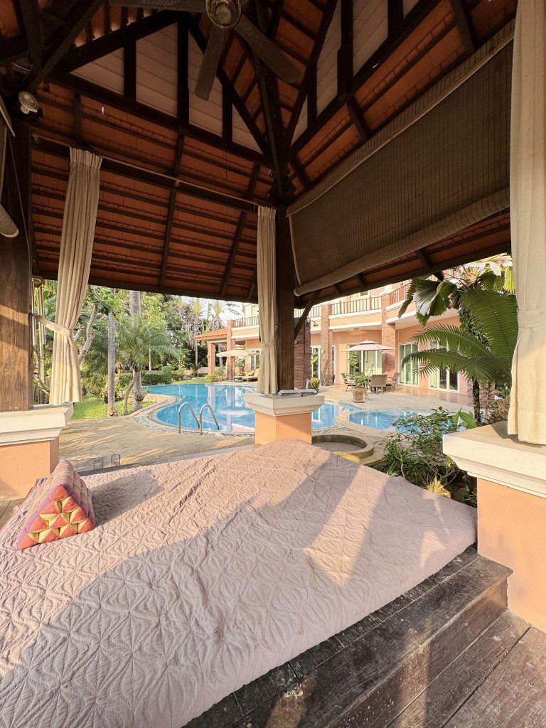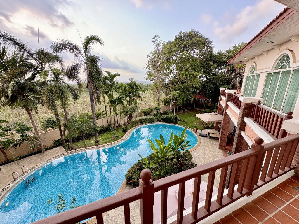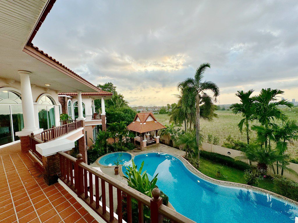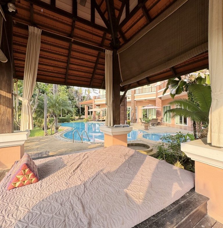 located in the prestigious Phoenix Gold Golf and Country Club, this large residence has everything you could ask for in a home – a large pool, jacuzzi, wine cellar, aviary, tropical ponds, 4 spacious bedrooms, a study, three ensuite bathrooms (plus an additional guest toilet), a Sala Thai, a large aquarium, and even a private elevator to the Master bedroom. Designed by a renowned hotel architect, the build quality of this home is outstanding. The lush gardens, designed by a professor of landscape architecture, provide every room of the house with beautiful views into your very own tropical paradise. Homes built to this high standard are rarely available so don’t miss out