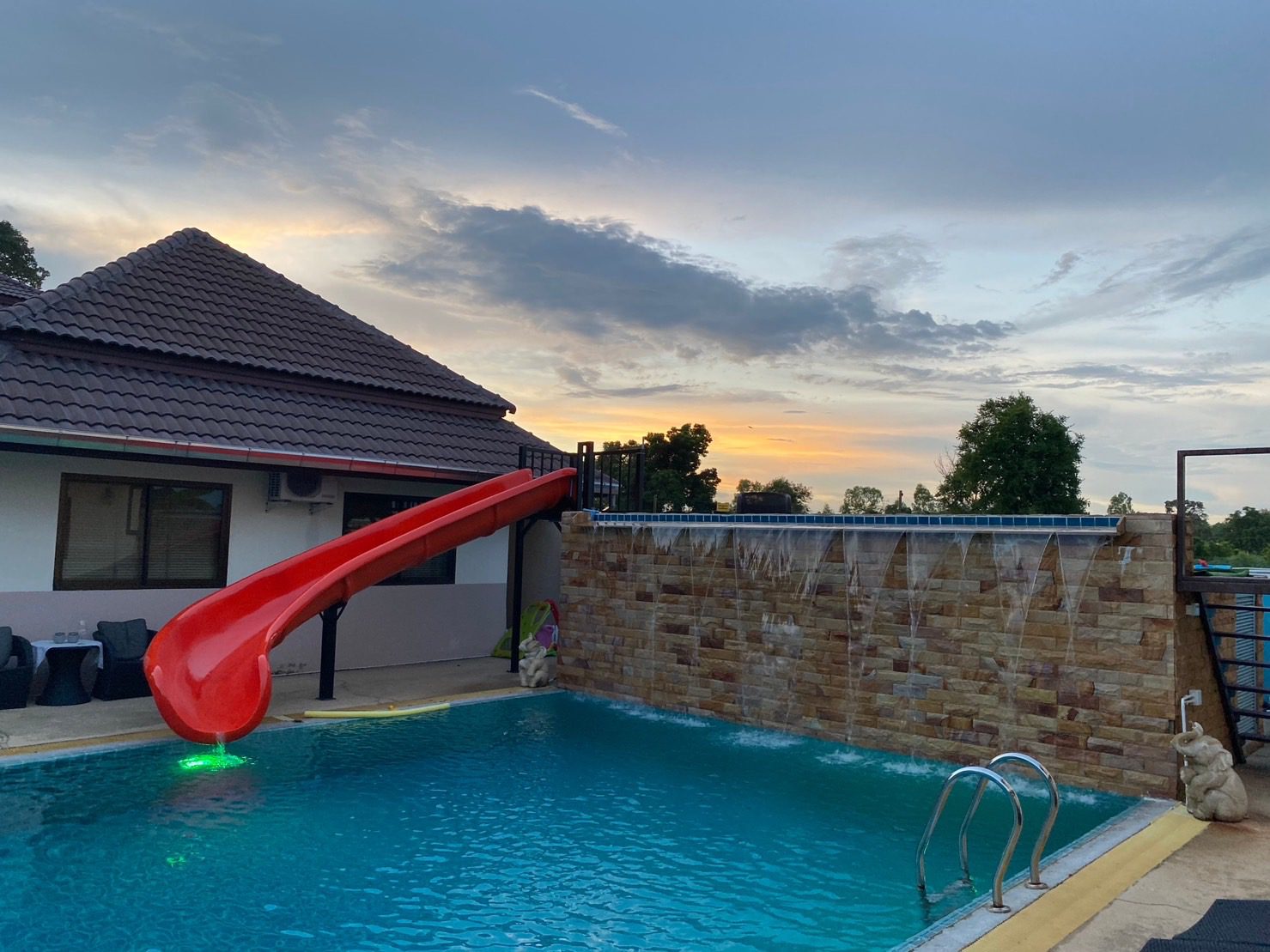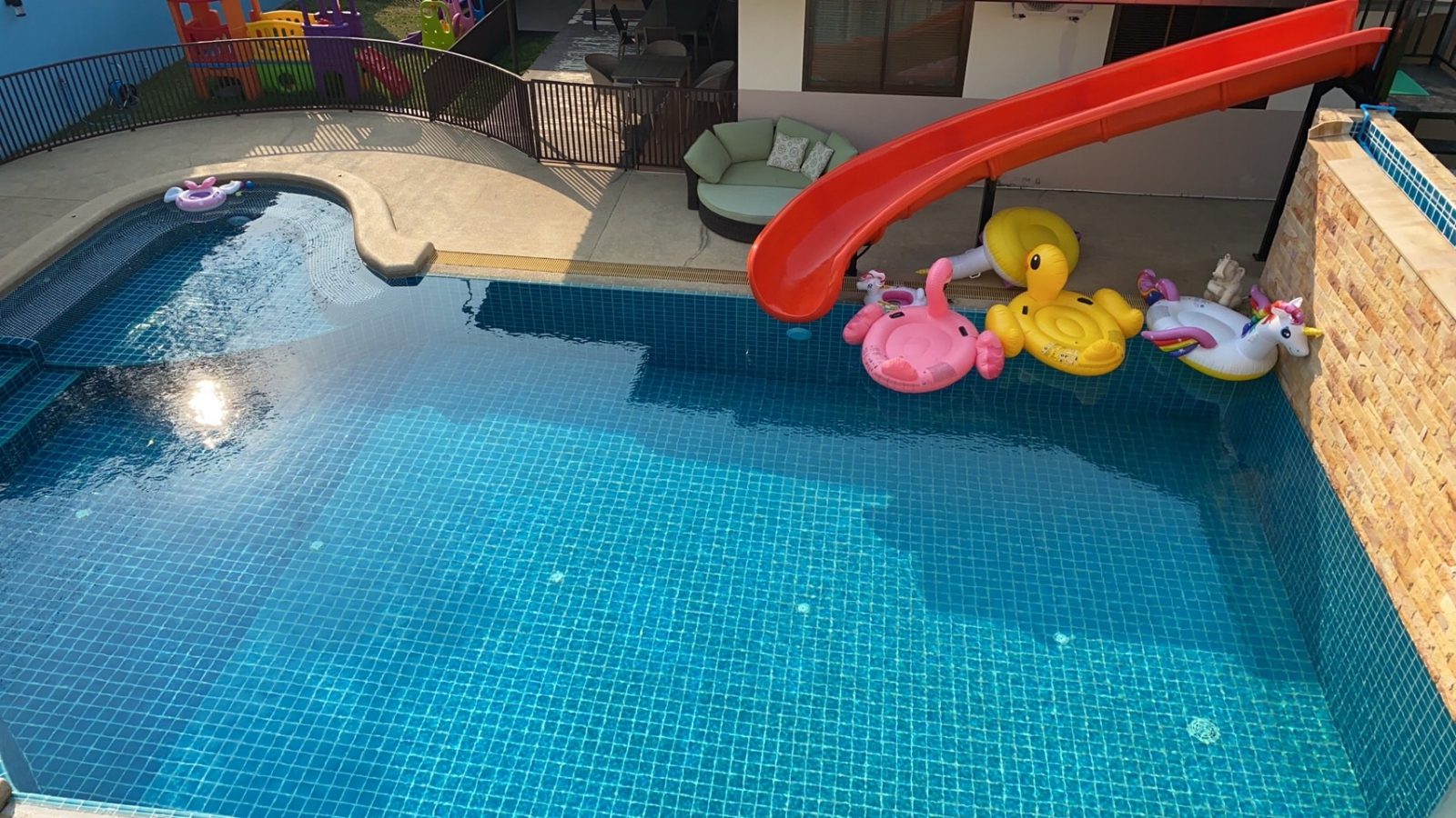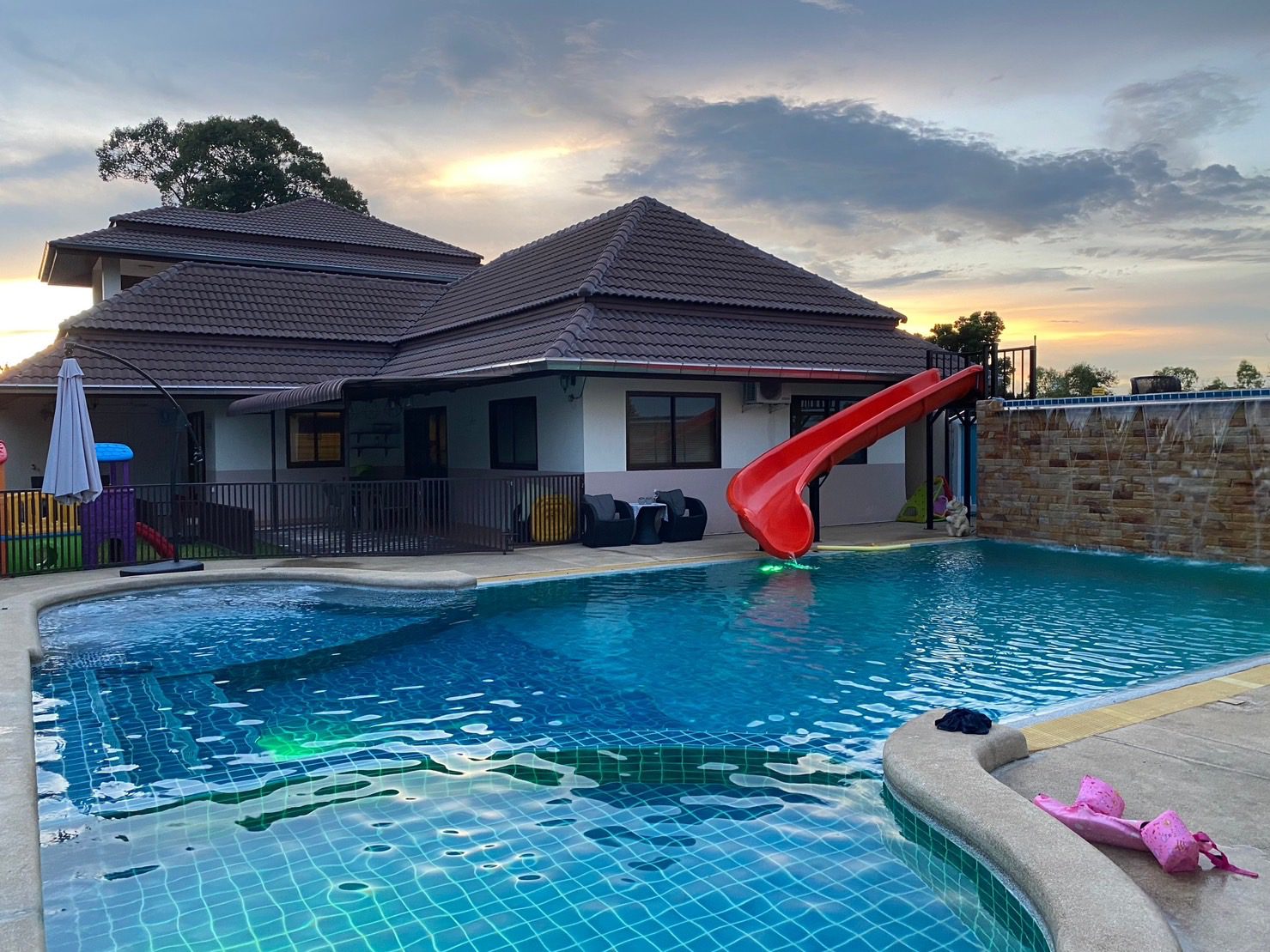 Spacious pool with specially designed water slide, Jacuzzi corner, Children corner, Waterfall