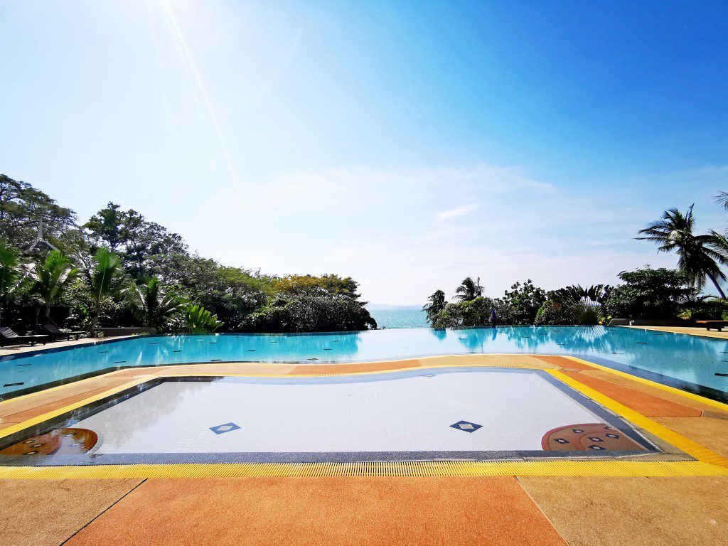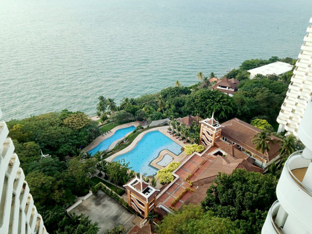 This beautiful condo is located in Royal Cliff, the most desirable location at the very end of Bali Hai Cape and near Pratumnak Park, the Lighthouse, and the Sheraton Hotel and is considered by many the most desirable place to live in Pattaya. It offers some of the best common facilities of any condo: a large park on the beach, spectacular infinity pools, excellent security, abundant parking, and the best management.