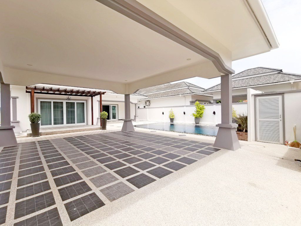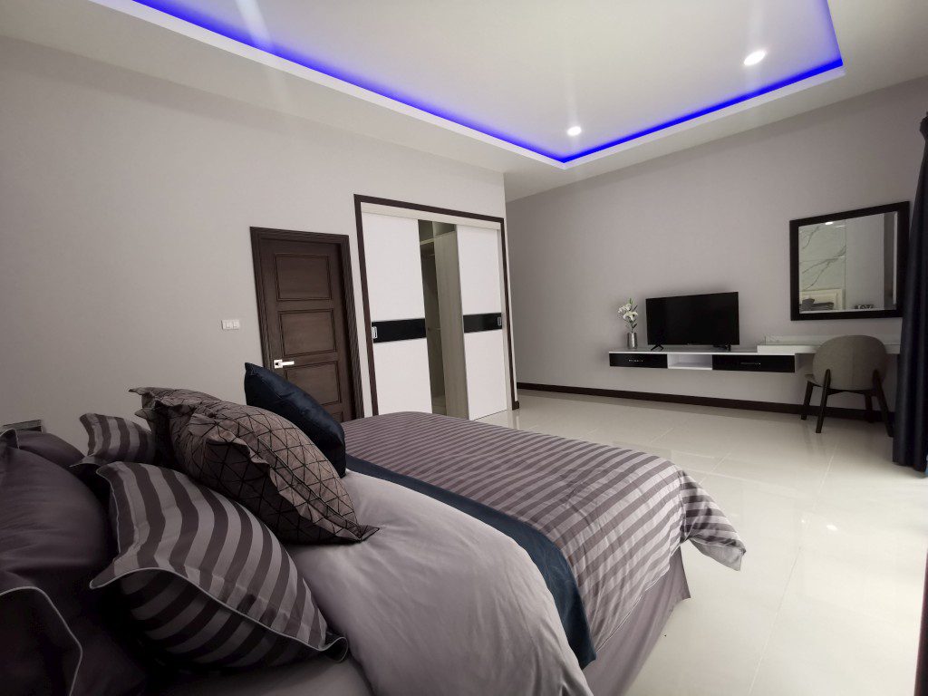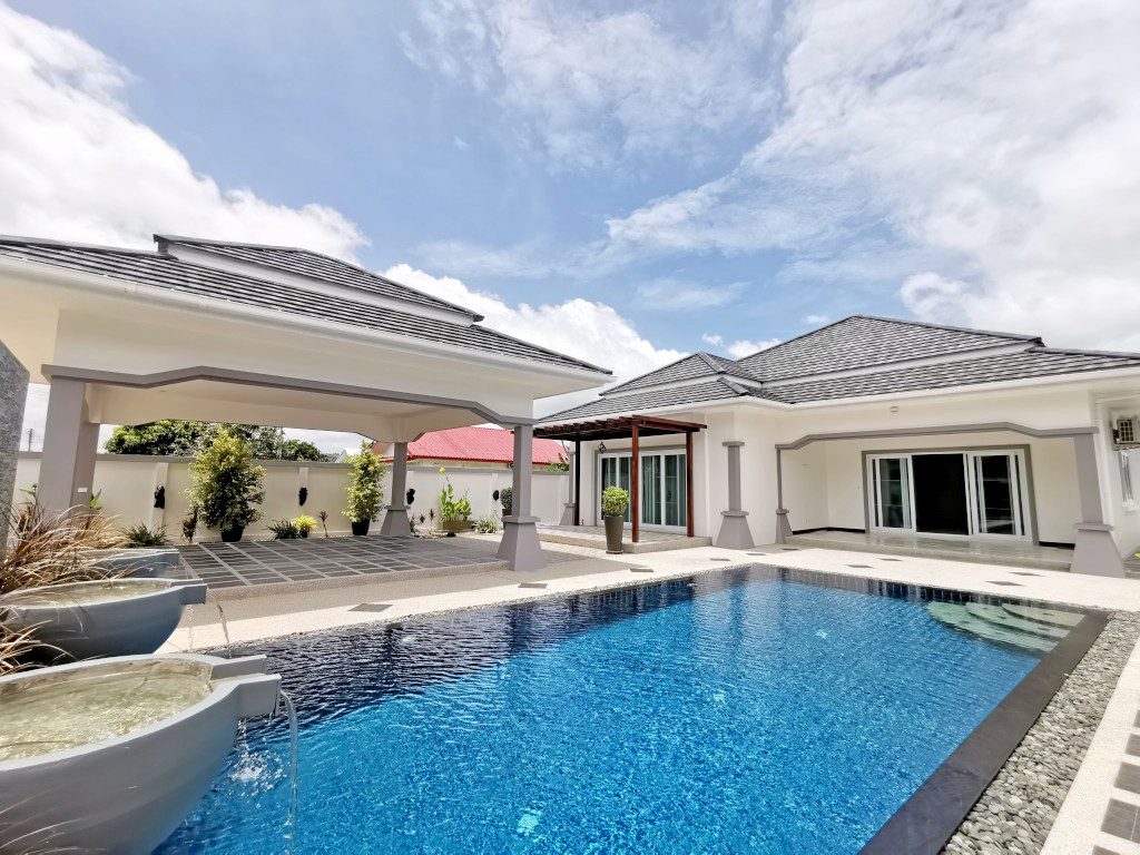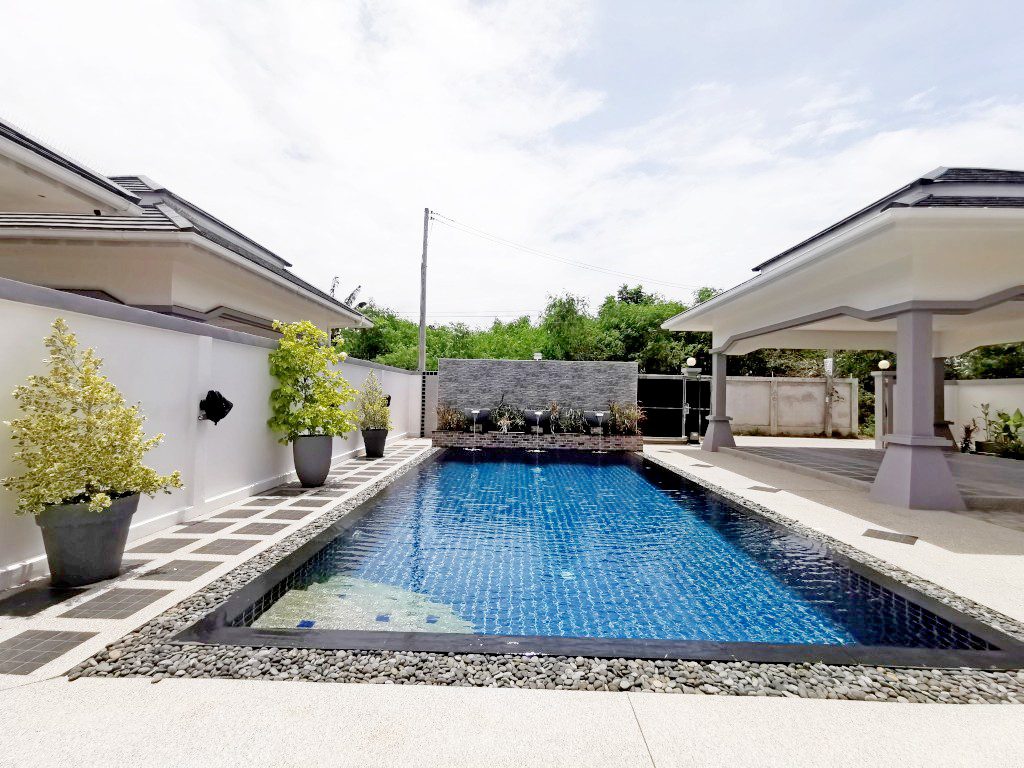 Luxury pool Villa Located in Bang Saray, this truly spectacular brand new villa only 5 minutes to the beach, built with only the highest quality materials and designed around a modern Asian/Euro theme accommodating luxury touches. An amazing 9m x 5m swimming pool with water feature which cleverly disguises the pump room and storage room.