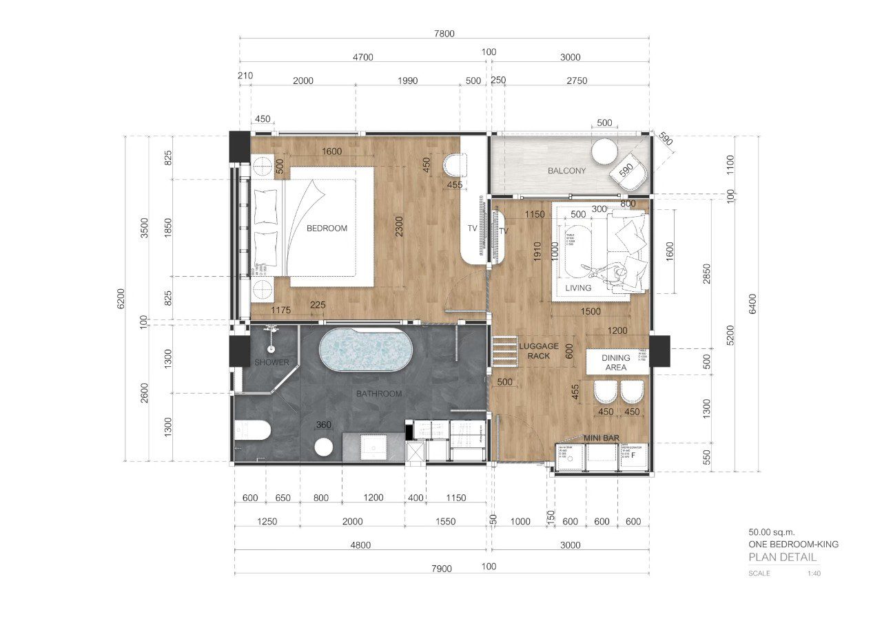 1 bedroom (usable area approximately 49.40 – 50.00 sq m.)