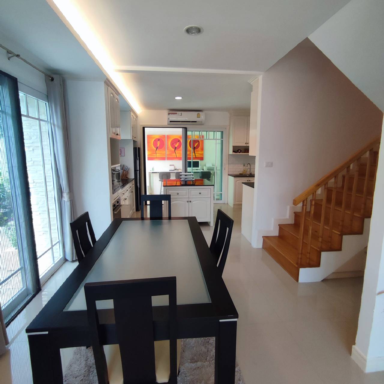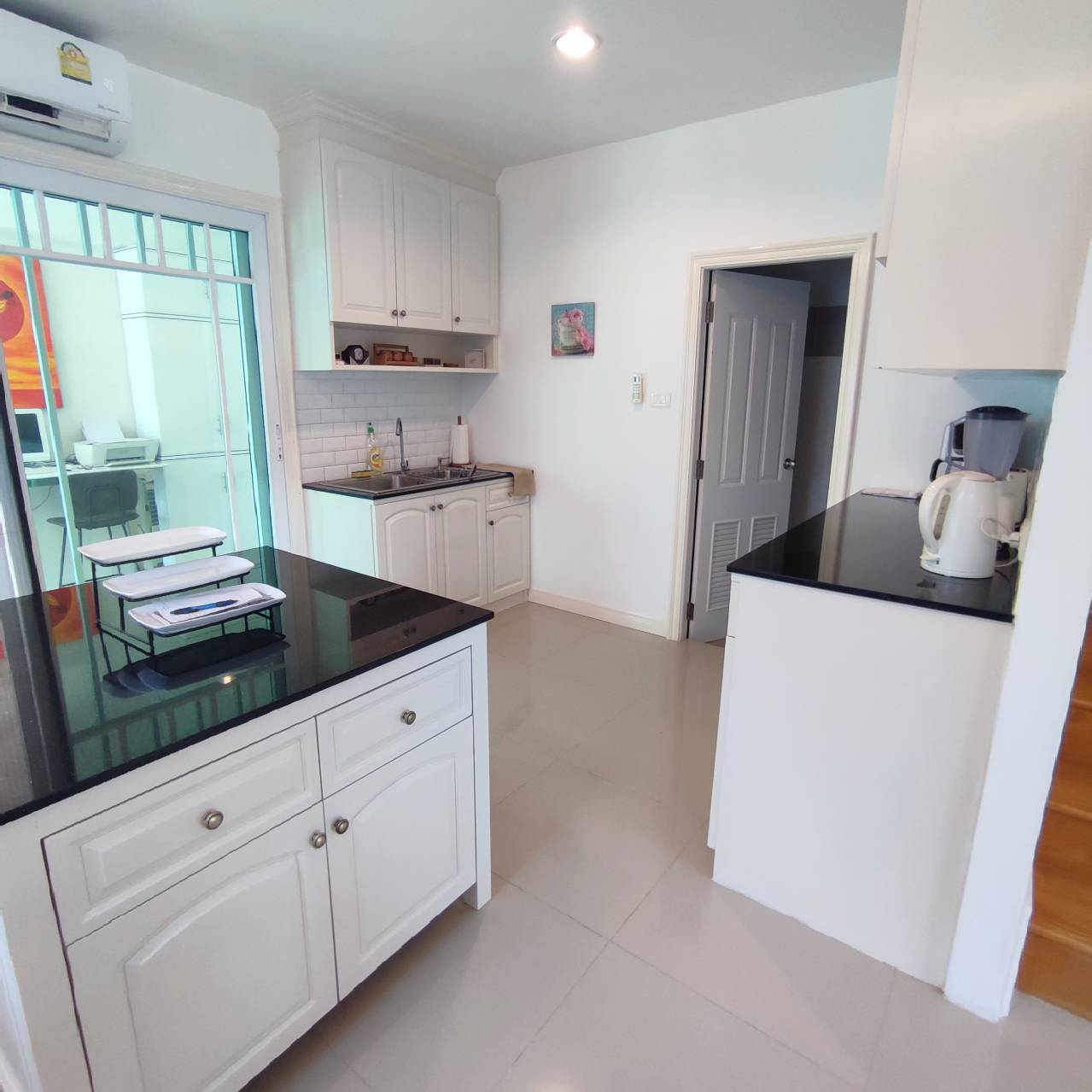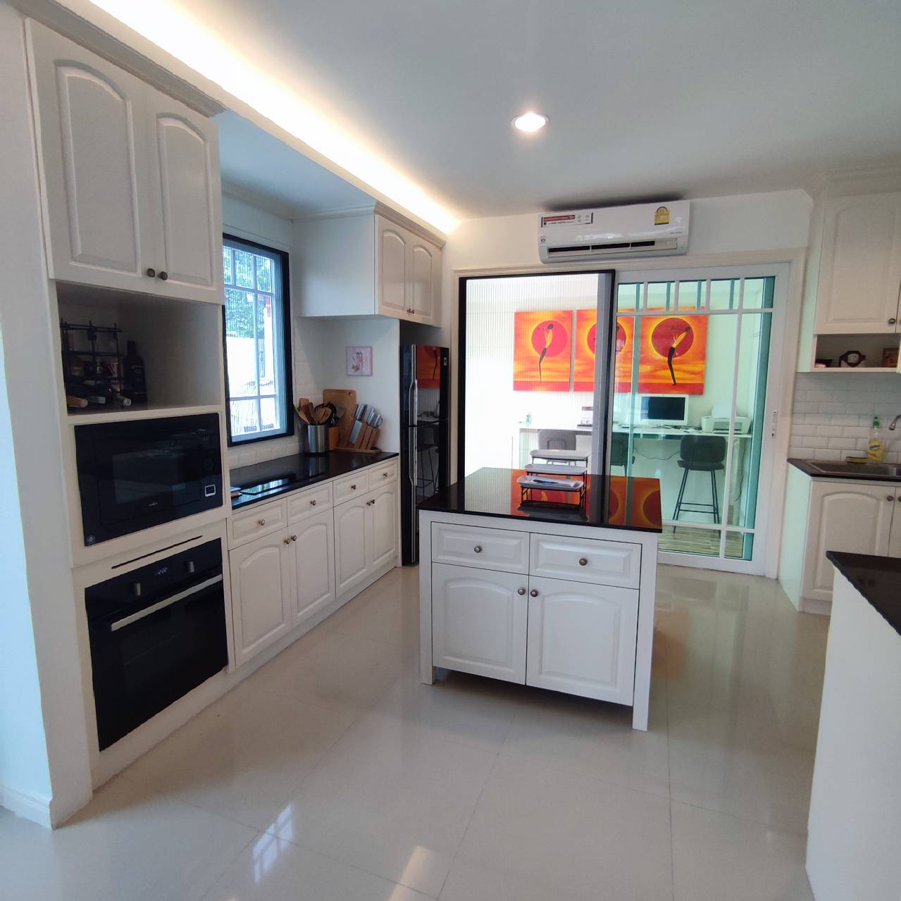 storage room, open plan living room, fully furnished, extended kitchen area, 4 aircon units