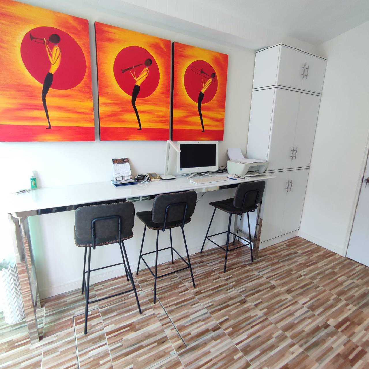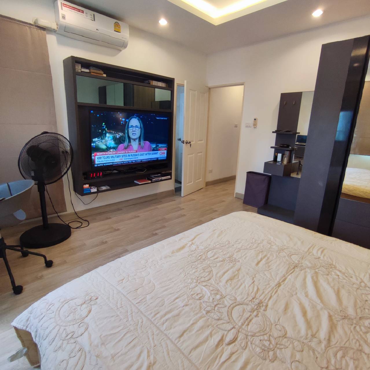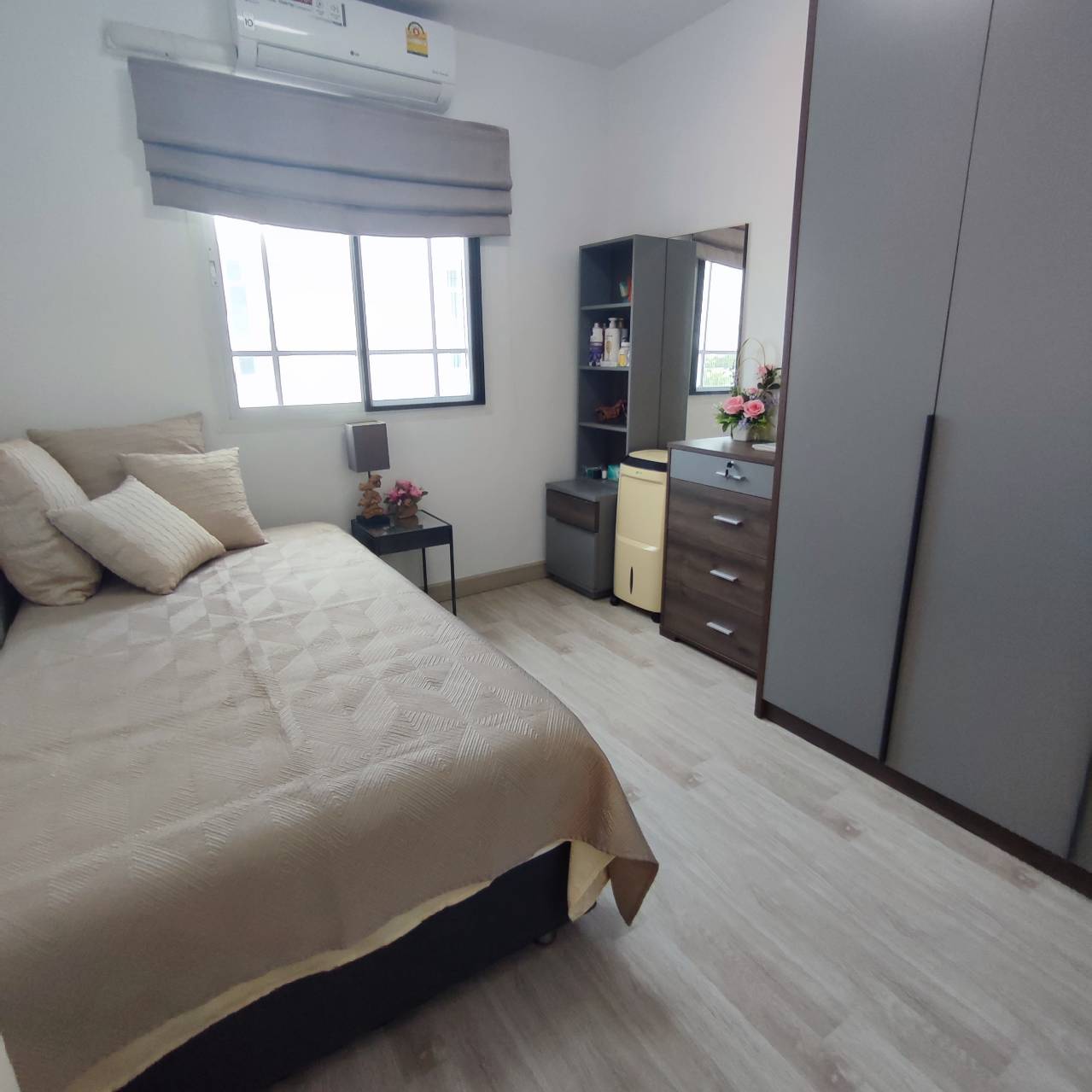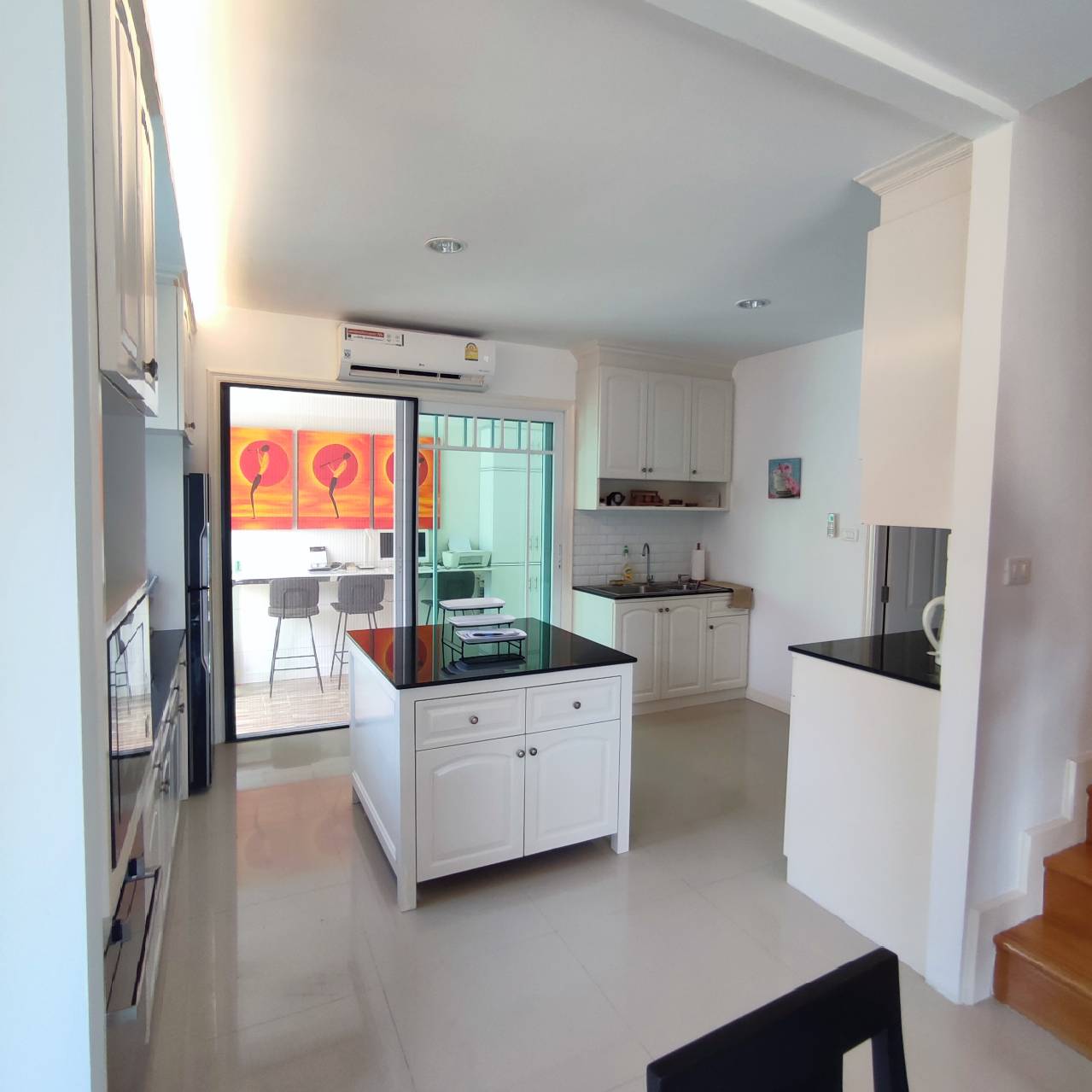 storage room, open plan living room, fully furnished, extended kitchen area, 4 aircon units
