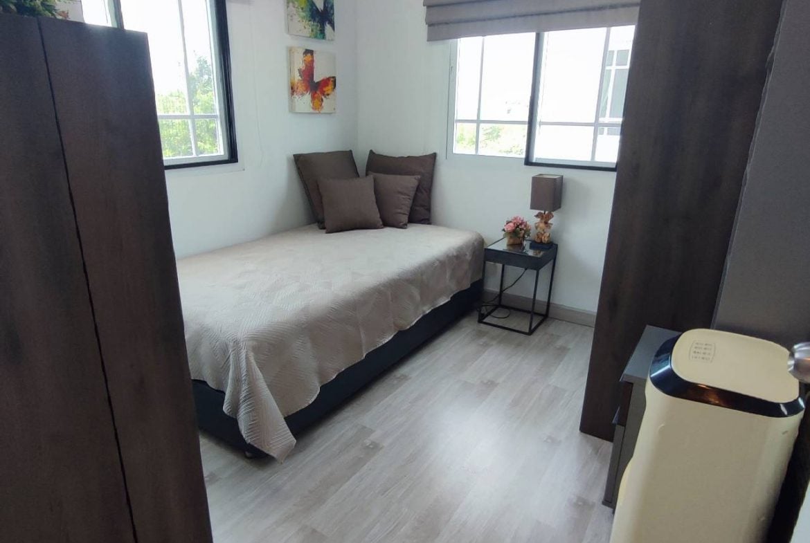 2-story townhome, 3 bedrooms, 2 bathrooms, 1 kitchen. There is a garden for walking and relaxing outside. There is convenient parking. Bristol Park Pattaya is a pleasant village, quiet, very good atmosphere. Suitable for families. Near tourist attractions .Phonenix Gold Golf&country club,Cowboy Farm Resort,closed to the 100 years Olds Chinese Market,Columbia Pictures Aquaverse.