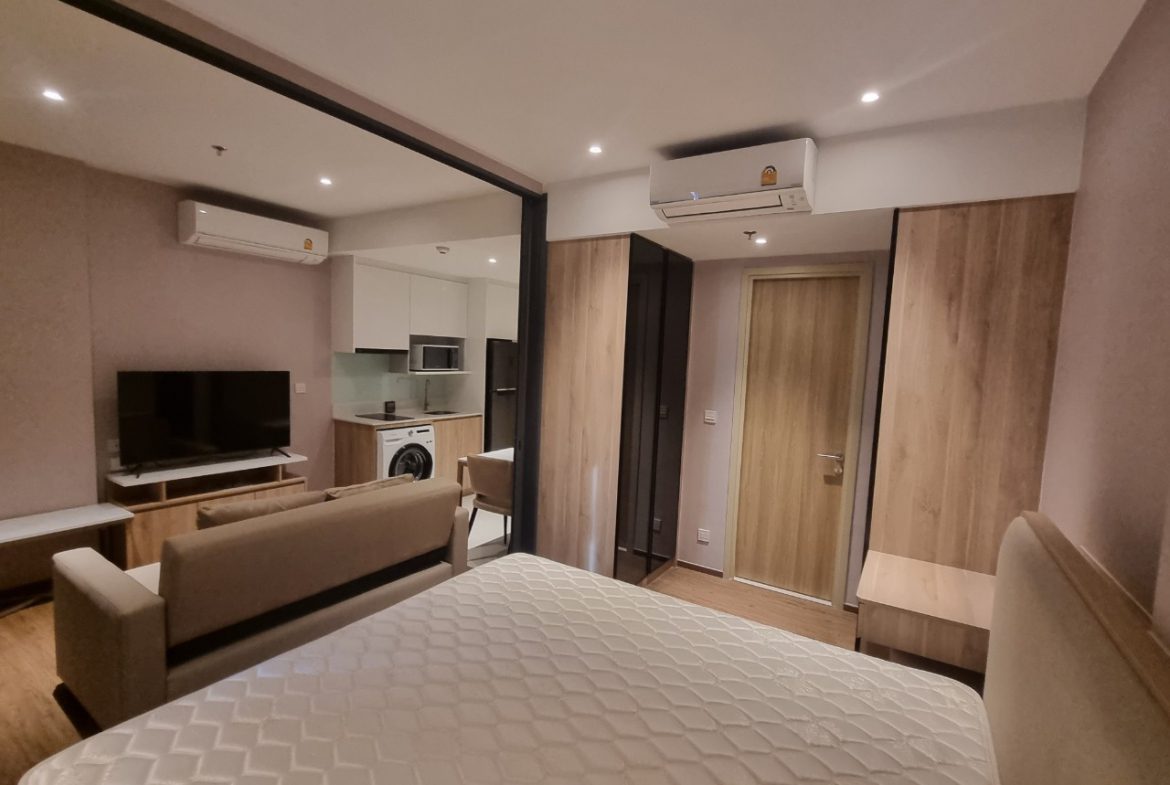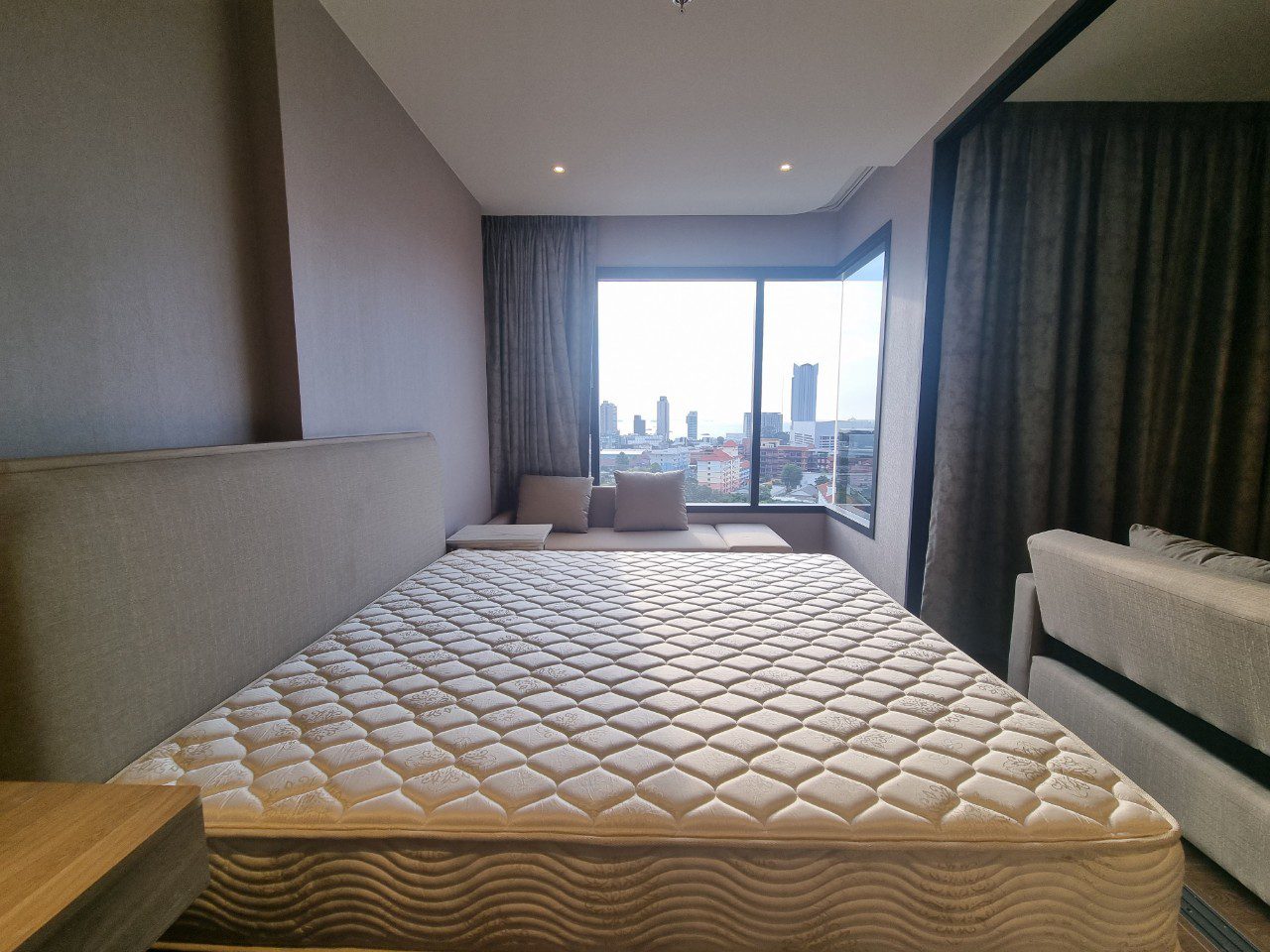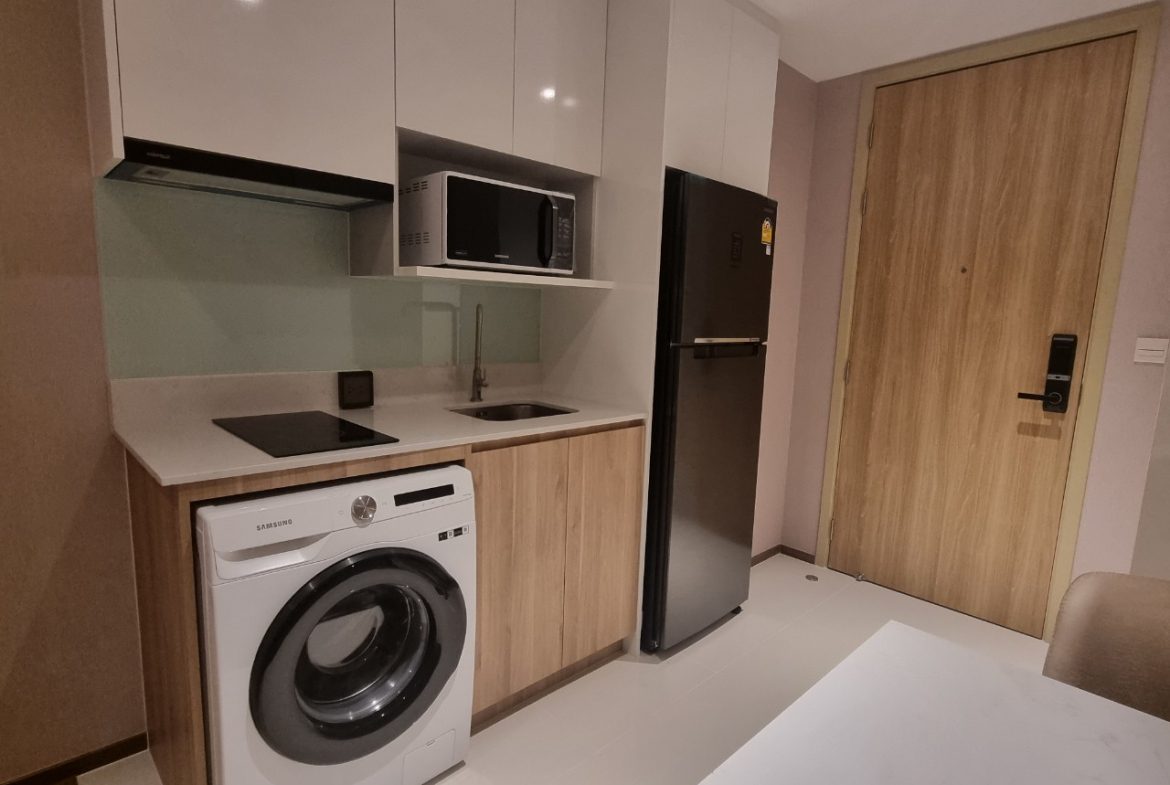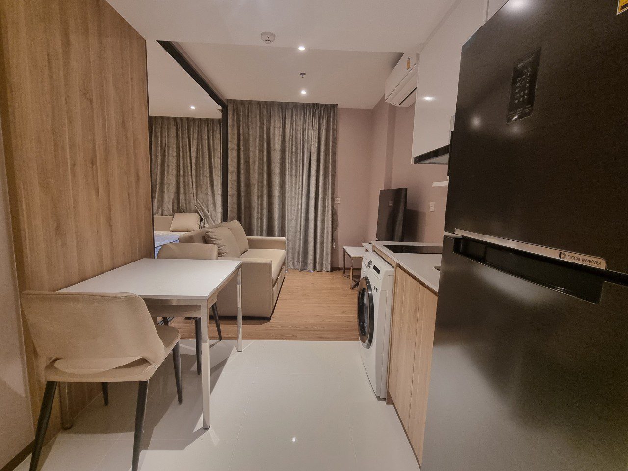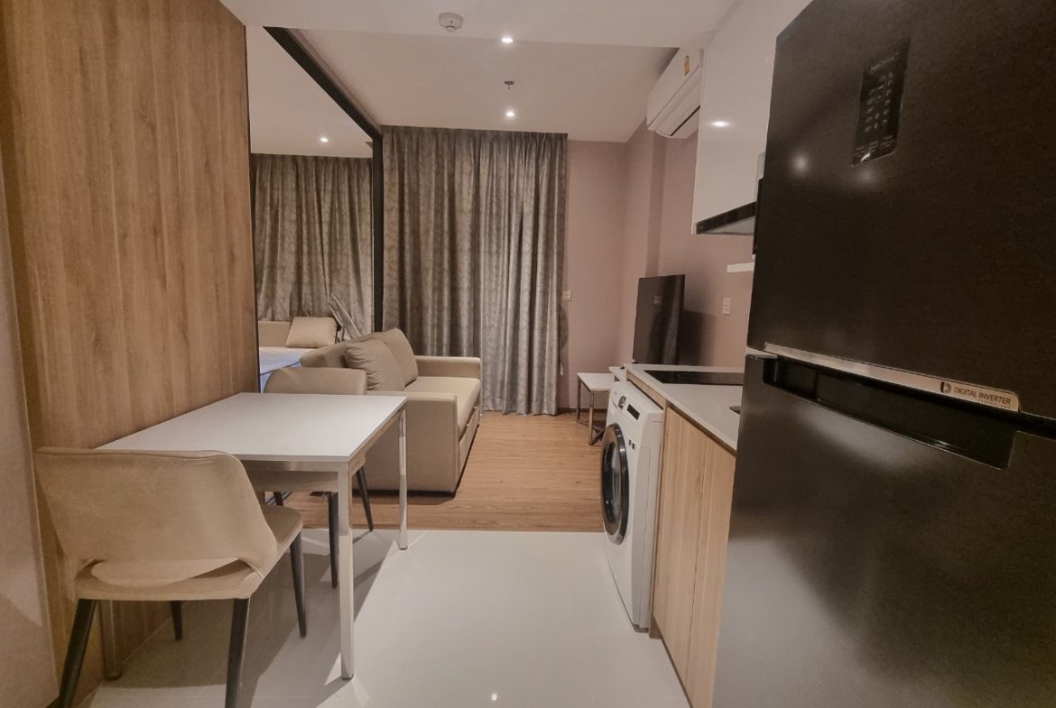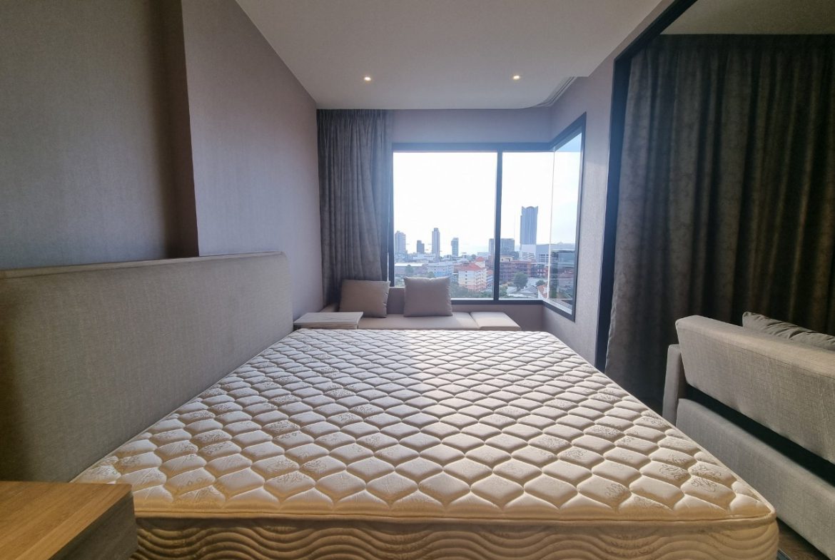 This is 1 Bedroom, 1 Bathroom Condo for Rent in North Pattaya, offering 35 Sqm of living area, located on the 12th floor. Comes full furnished, built-in European kitchen, electric hob, refrigerator, dining table, microwave, washing machine, comfortable sofa, flat screen TV, built-in wardrobe, en-suite bathroom, balcony with partly sea view and city view.