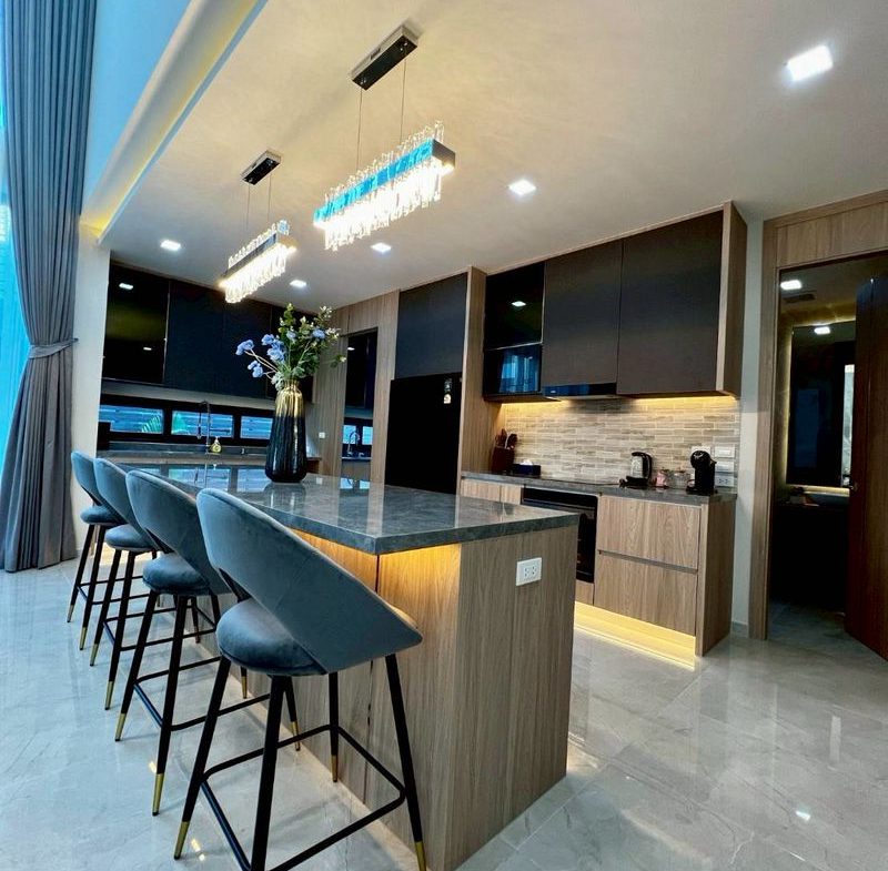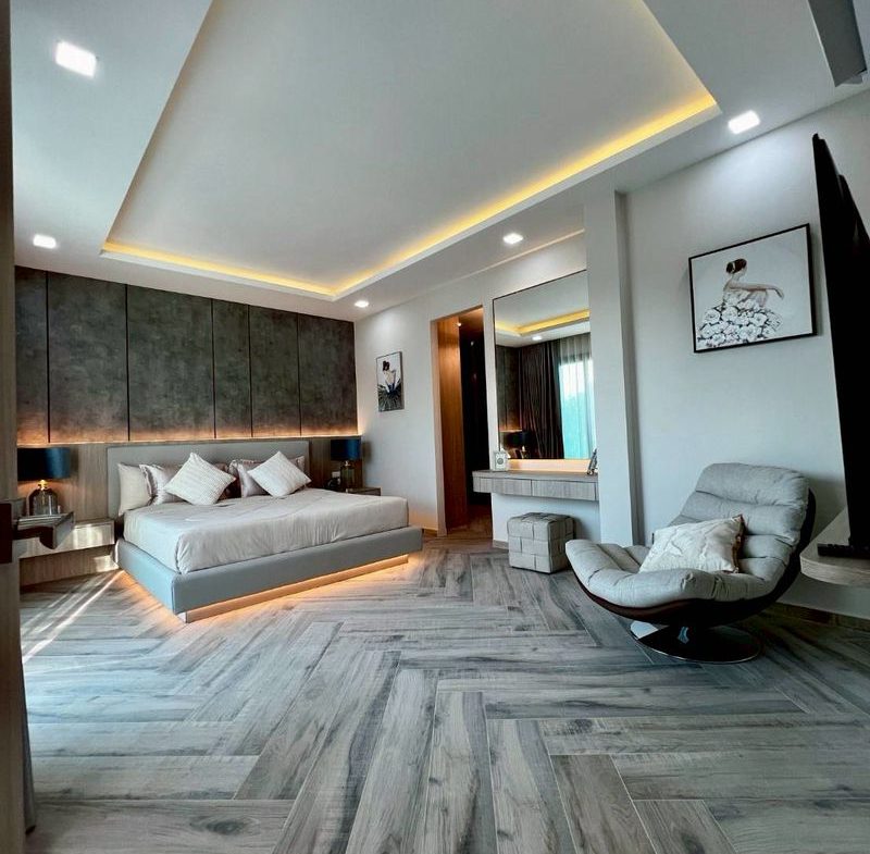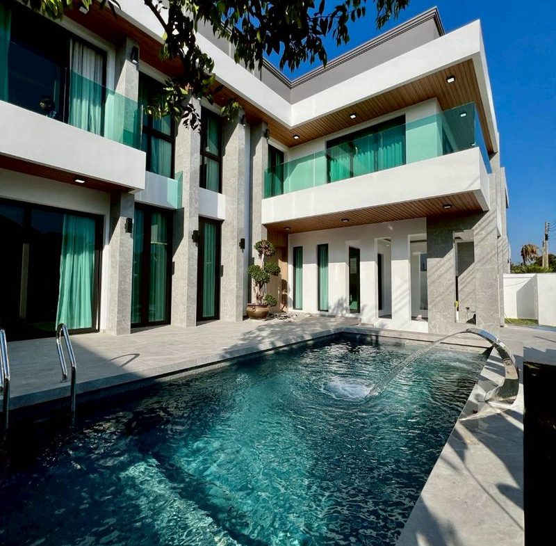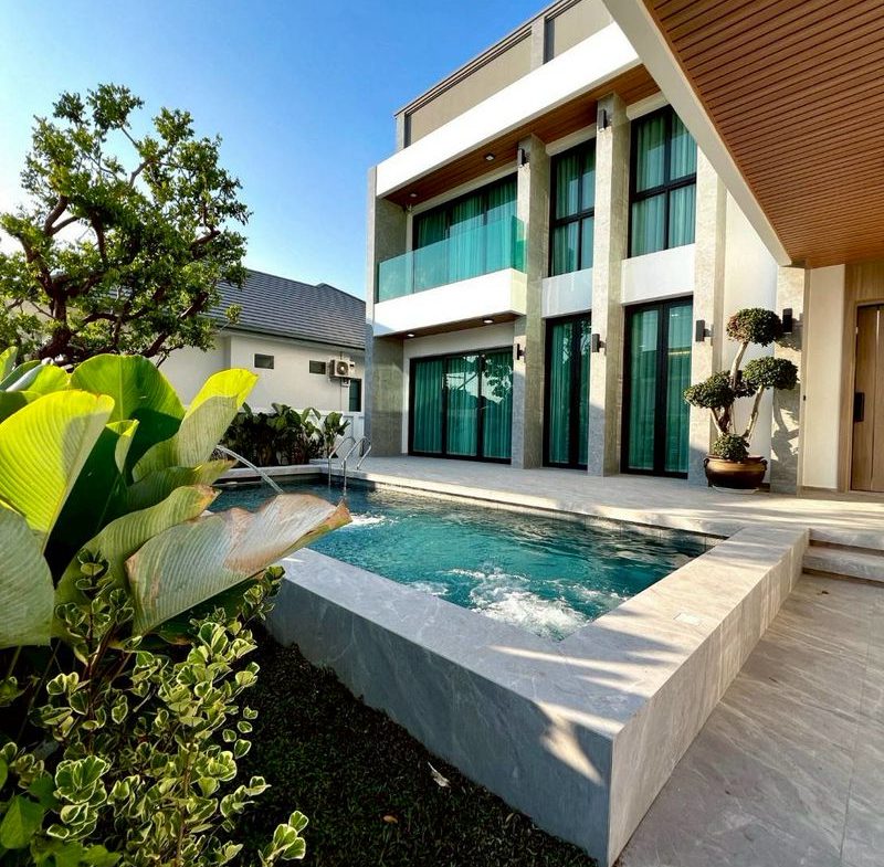 Set within a limited collection of just five private homes, this large detached pool villa at Impress Village offers space, privacy, and modern comfort in one of East Pattaya’s most desirable residential zones near Siam Country Club. Designed for family living, the property combines generous indoor space with a private swimming pool and secure community setting.