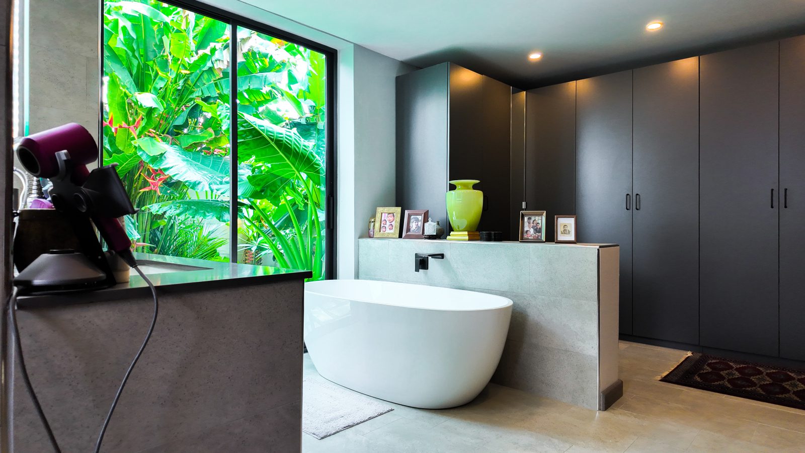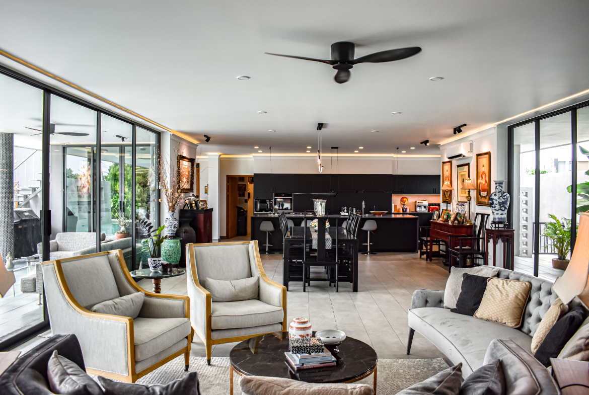 Experience smart, stylish living on an expansive 𝟖𝟳𝟱 𝗦𝗤.𝗠. landplot, where modern contemporary interiors meet tropical architectural charm.