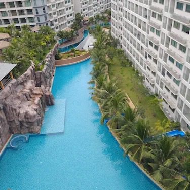 The Maldives brings a new resort experience to Pattaya real estate on an unprecedented scale. Maldives-themed lagoon pool running through the entire development. This comprises 3 different pool areas featuring numerous landscaped islands boardwalks Gazebo-relaxation areas and three white-sand beaches. Each building comprising modular studio and 1 bedroom apartments is set on the outside of the resort allowing for distances of 120 m between buildings. Interior units will feature a stunning lagoon pool & tropical landscape views overlook the verdant Jomtien parkland also with Pattaya city and Jomtien bay views on higher floors.