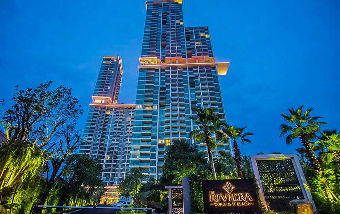 The Riviera Wongamat Beach is a luxury high-rise condominium consisting of 979 units, 95 percent of which have panoramic sea views over Pattaya Bay. Located on Naklue soi 16, Wongamat Beach, Pattaya s most Prestigious/Serenely Quiet and Peaceful area. The beach is just a few minutes’ walk along the secure road. Designed by Steven Leach Associates, The Riviera is at the leading age of modern architectural design. Interiors and furnishings are designed by Makeascene making The Riviera a stylish and luxurious place to live while remaining practical and comfortable. And the Landscape was designed by the same company as designed for The Central Grand Mirage Pattaya. The Riviera Wongamat is Developed by The Riviera Group