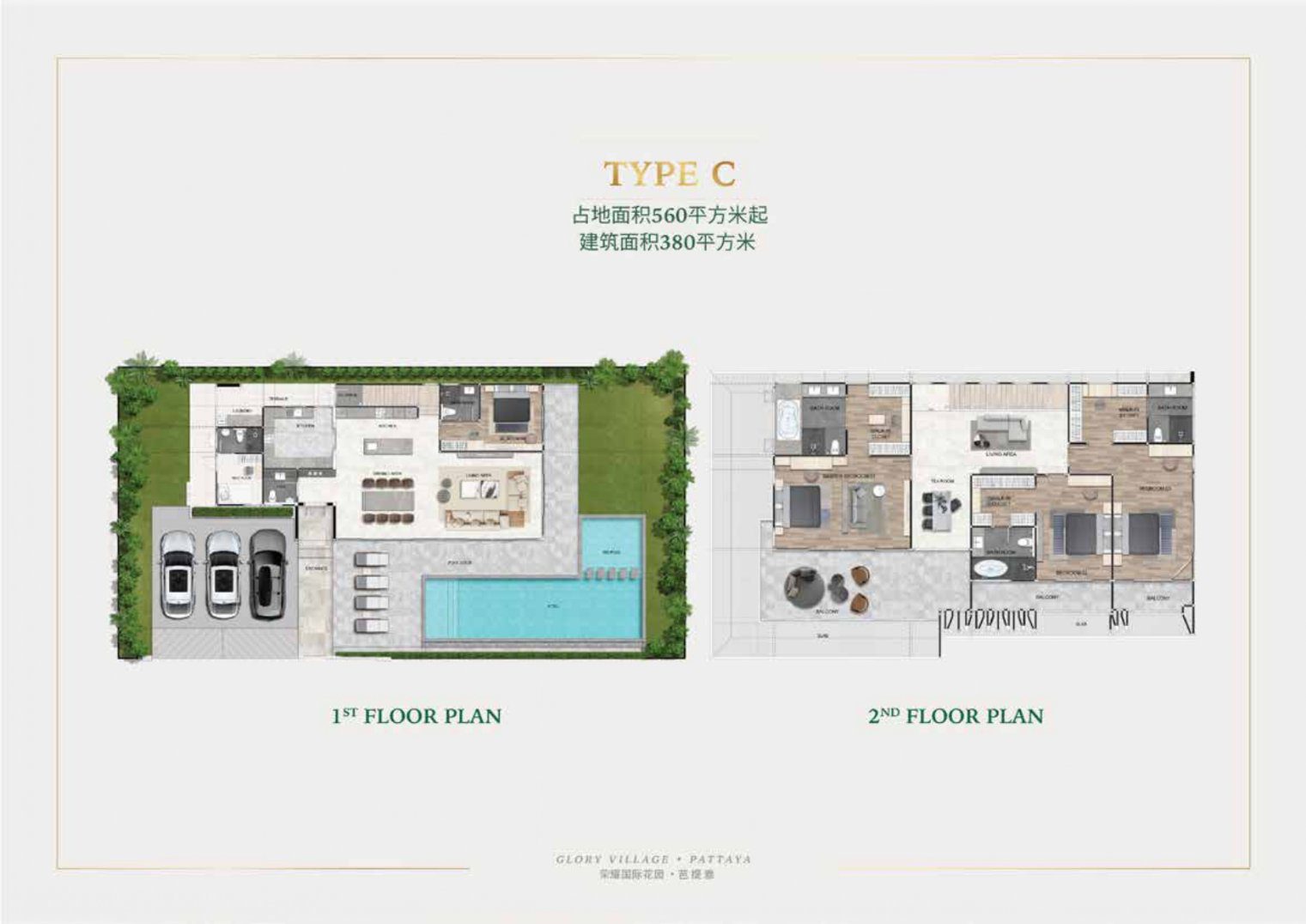 Type C: 380 sq m 4 bedrooms, 5 bathrooms with separate private maid’s room
