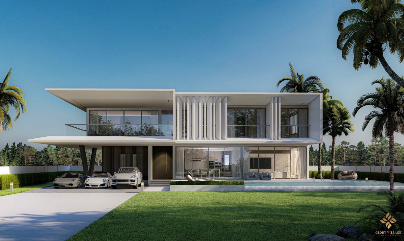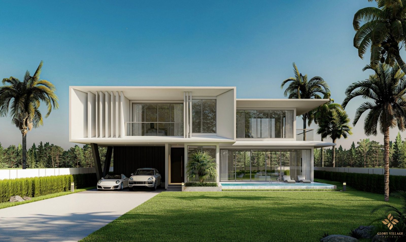 These modern luxury houses with private gardens and pools around the house offer 3 house designs to choose from.