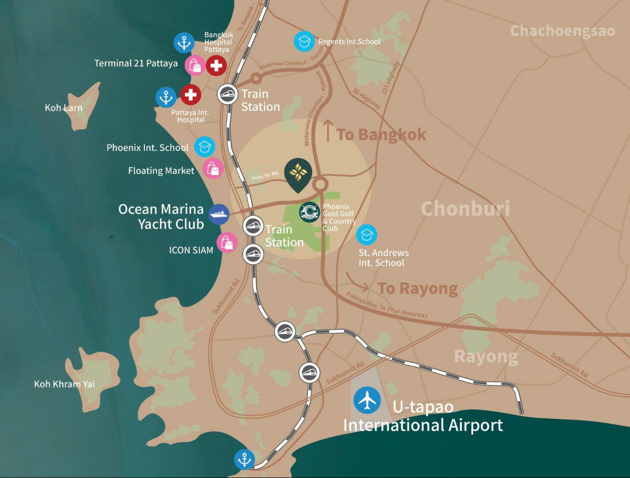 The project consists of 2-story detached houses with a total of 155 pool villas on an area of 91 rai close to the new Jomtien highway.