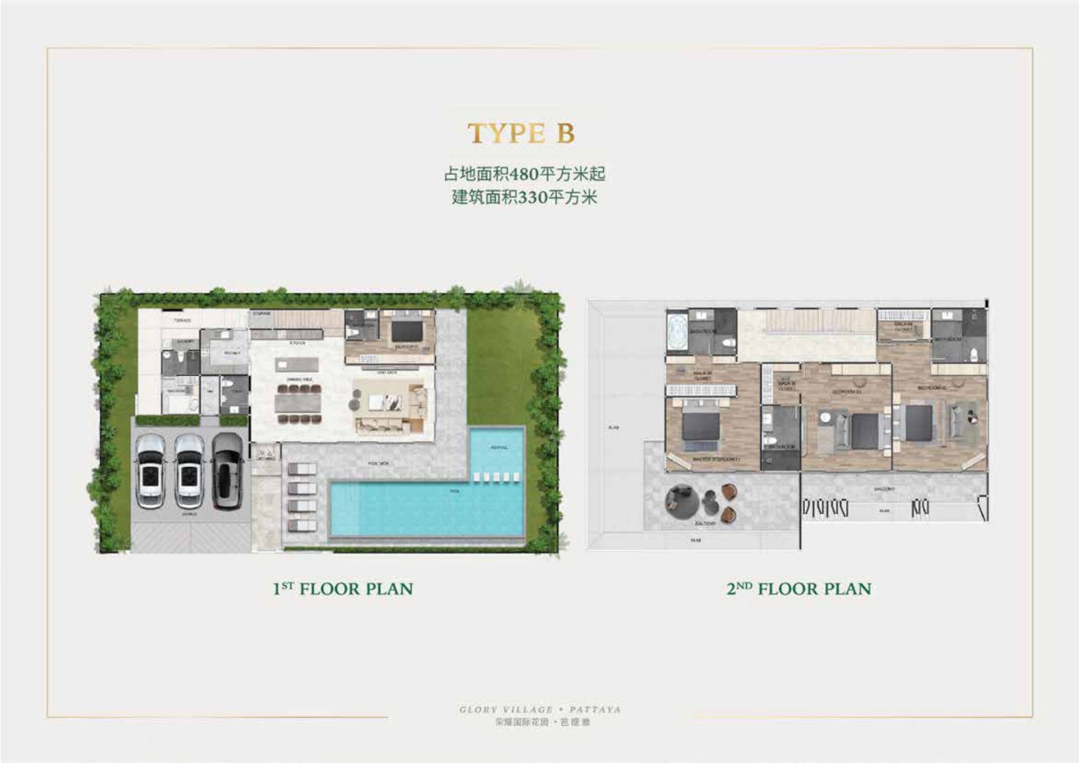 Type B: 330 sq m 4 bedrooms, 5 bathrooms