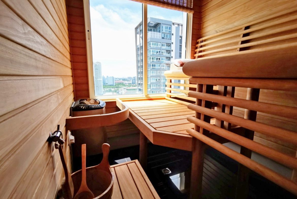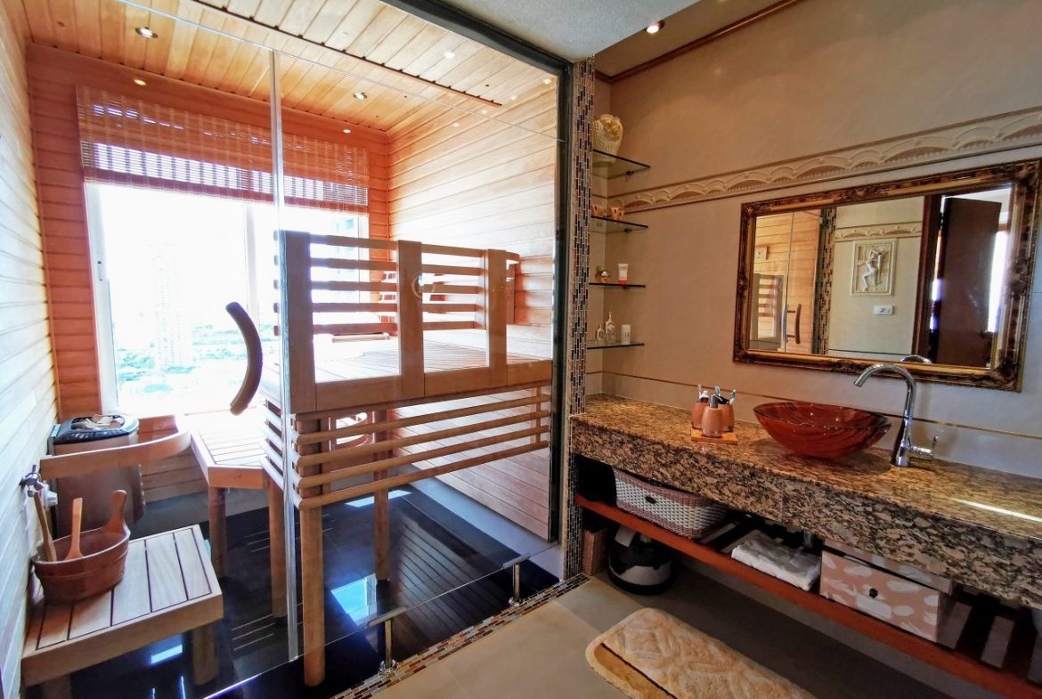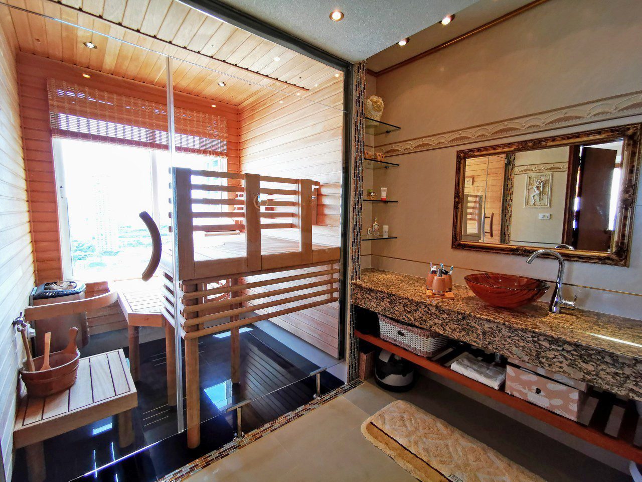 Not only has this property got an outdoor Sea View Jacuzzi it has an imported custom-built Finnish Sauna in the Master bathroom!