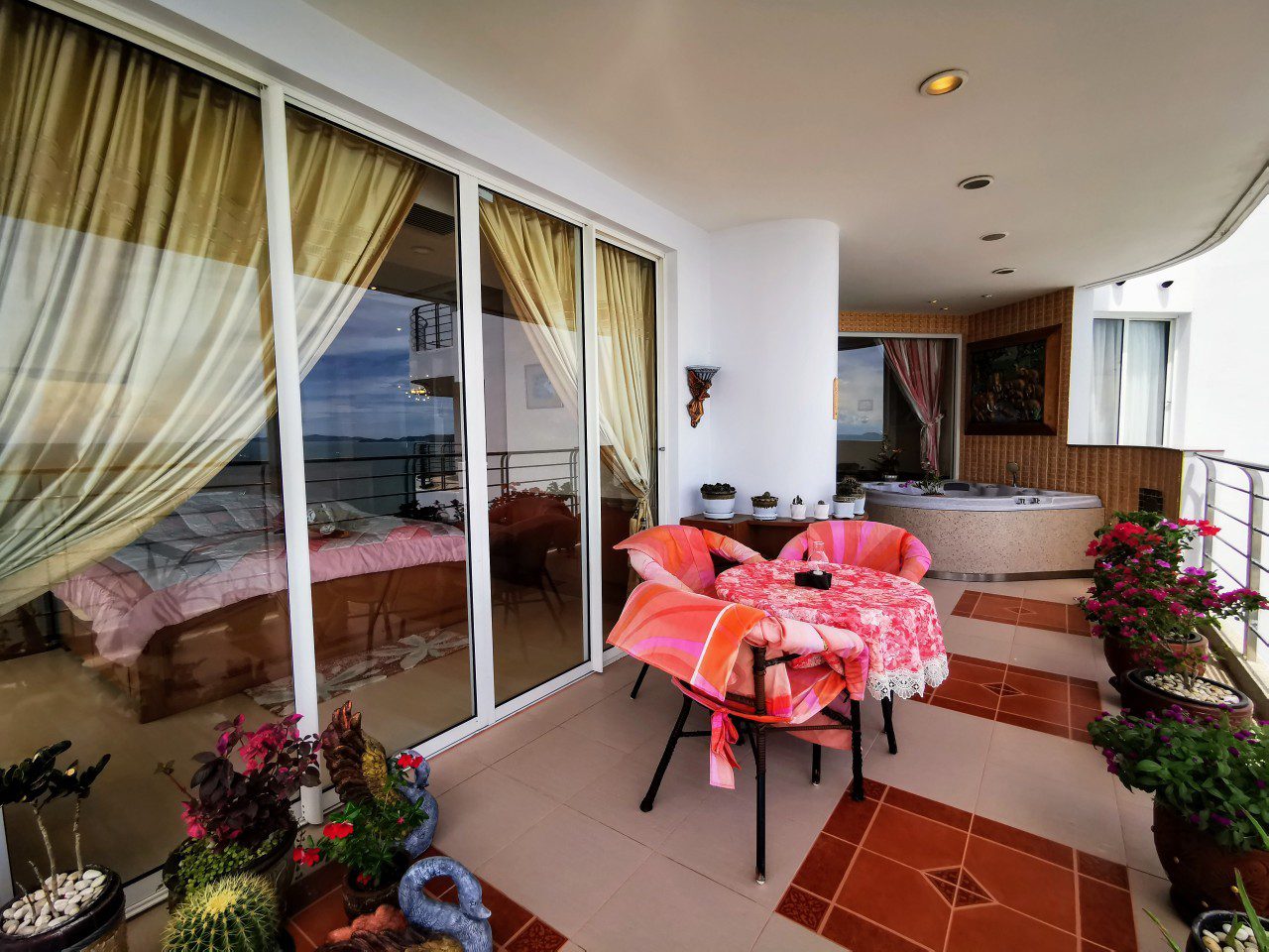 * Large Sea View Balcony with 3 Person Jacuzzi and seating