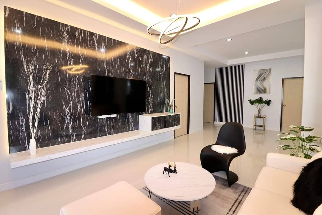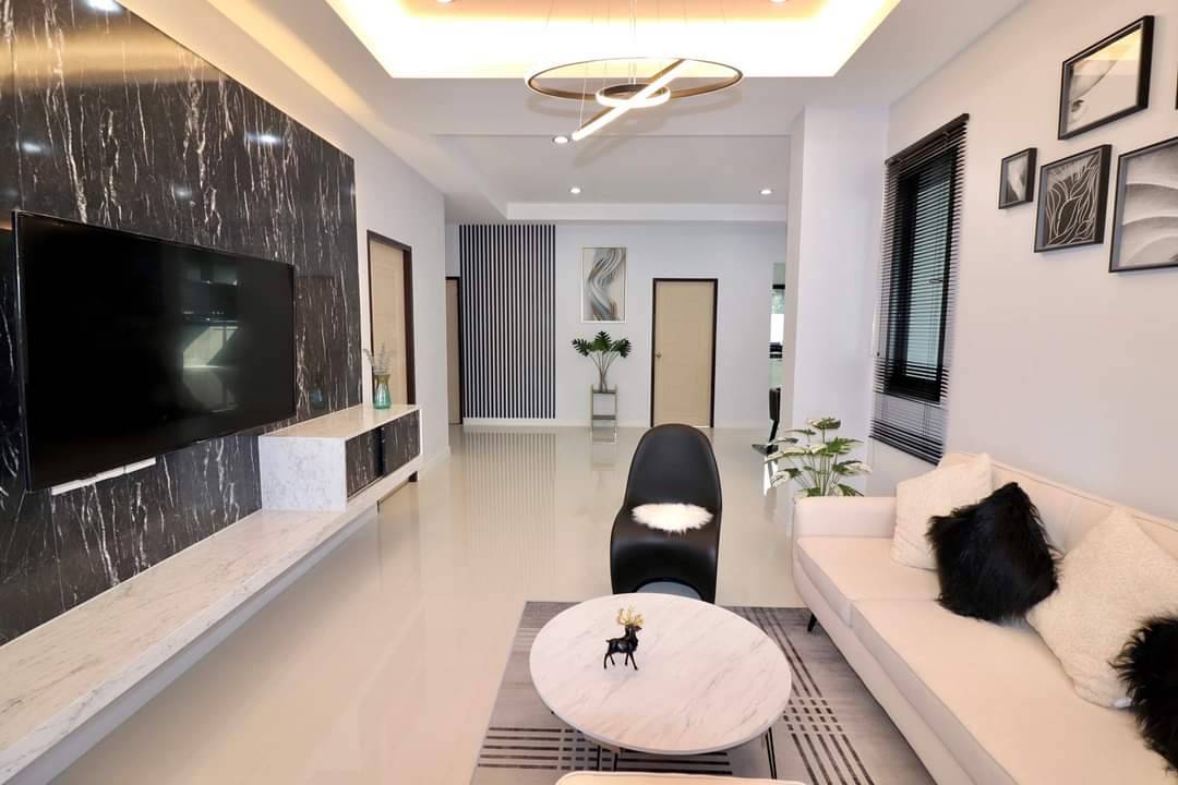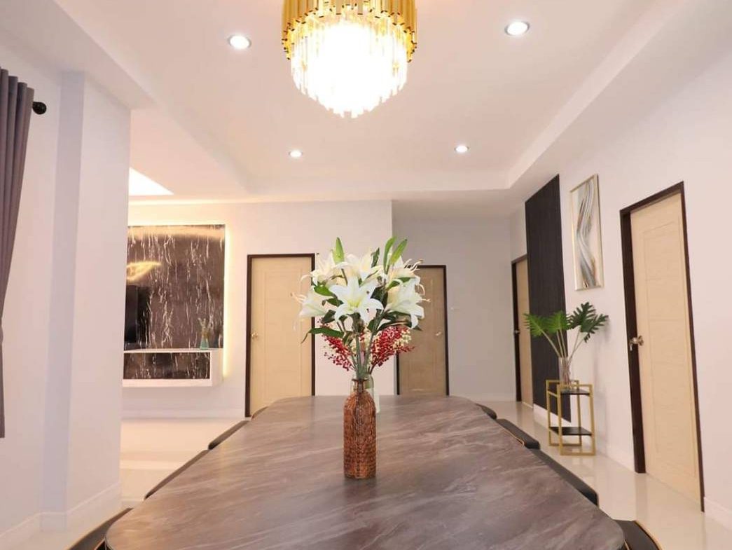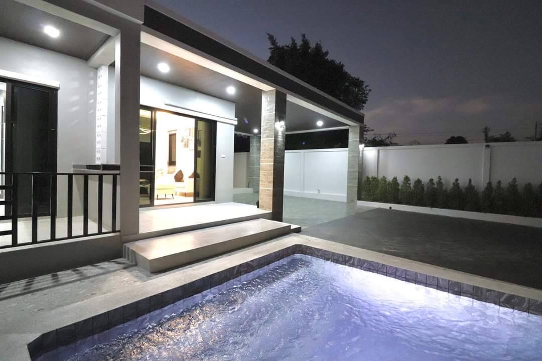 Pool villa (New house) for Sale at Huayyai Pattaya, It is 3 bedrooms, 2 bathrooms, a Land area of 400 Sqm., fully furnished built-in with a swimming pool, 5 air conditioners, TV 55″, 2 heaters, Large kitchen and dining rooms for free!!, It is government electricity and water, free pump and water tank 1,000 Lite, Parking inside 4-5 cars, Ready to move in
