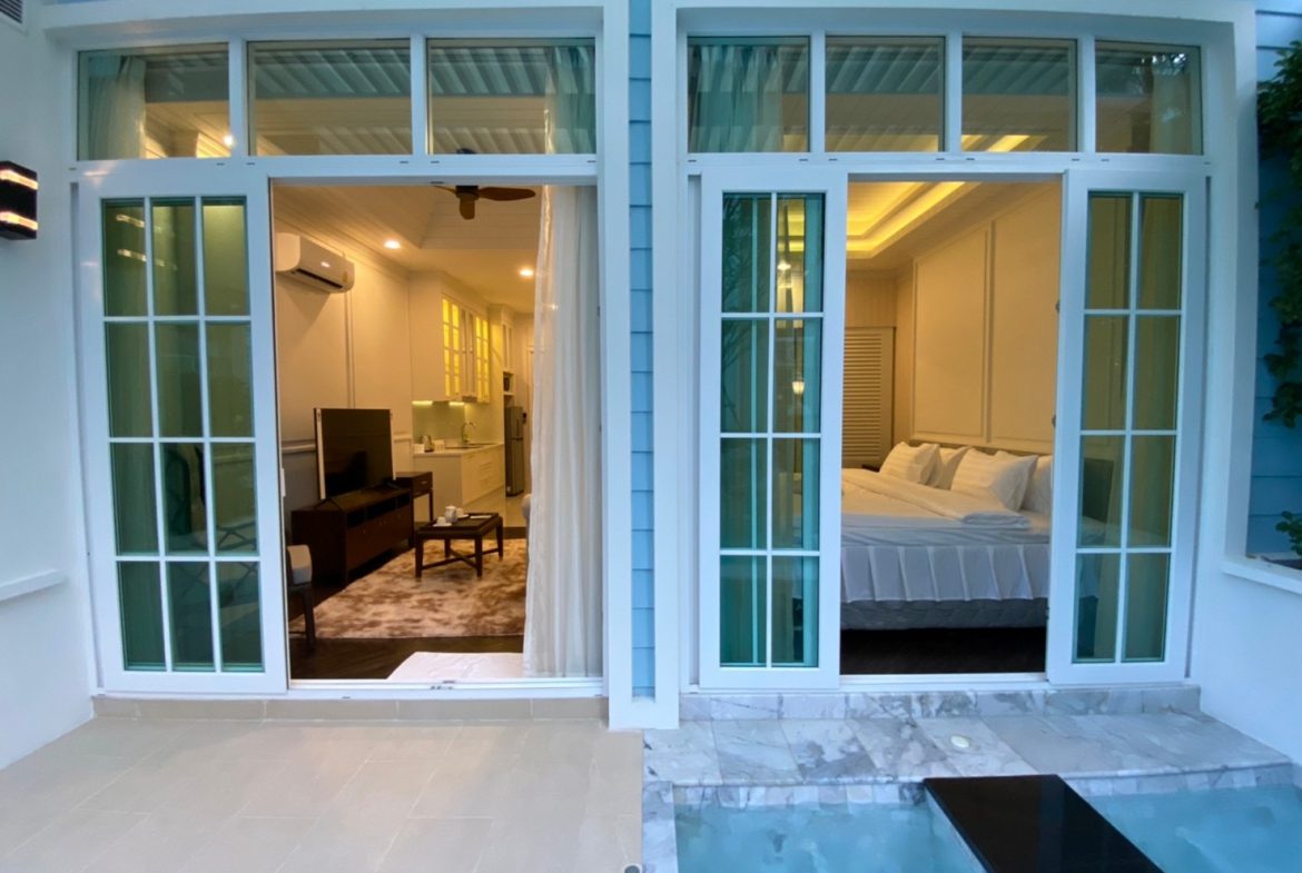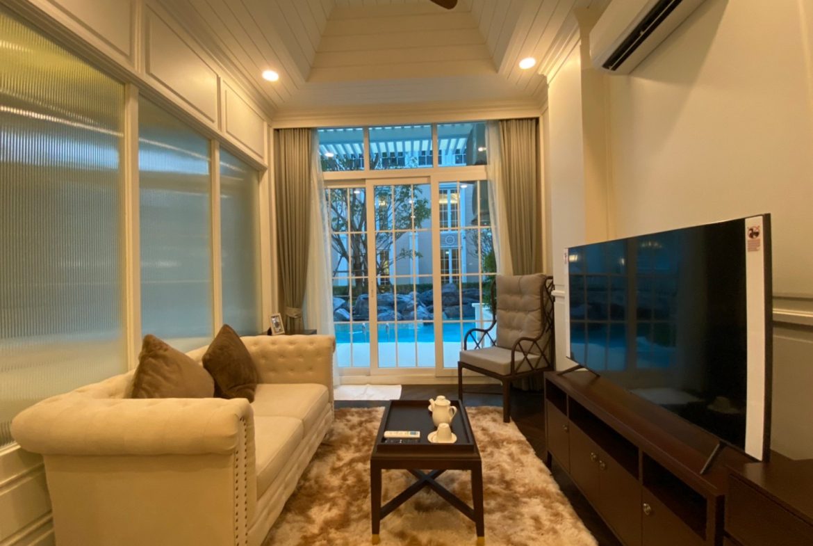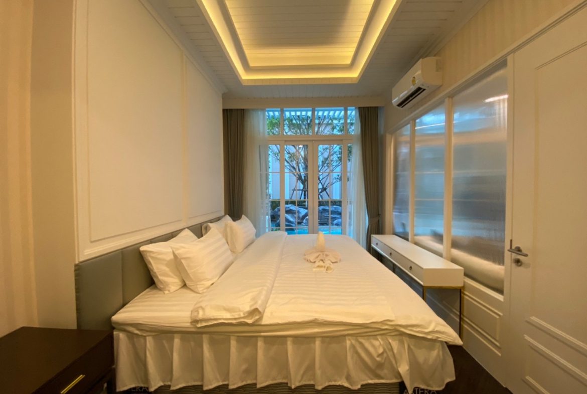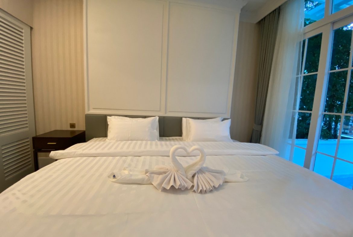 Experience serene beachfront living in this exclusive pool access condominium at Grand Florida. Designed for comfort and convenience, this 1st-floor unit offers a unique combination of privacy, direct pool access, and a private Jacuzzi on the balcony, making it an excellent option for relaxed living or long-stay residents in Na Jomtien real estate.