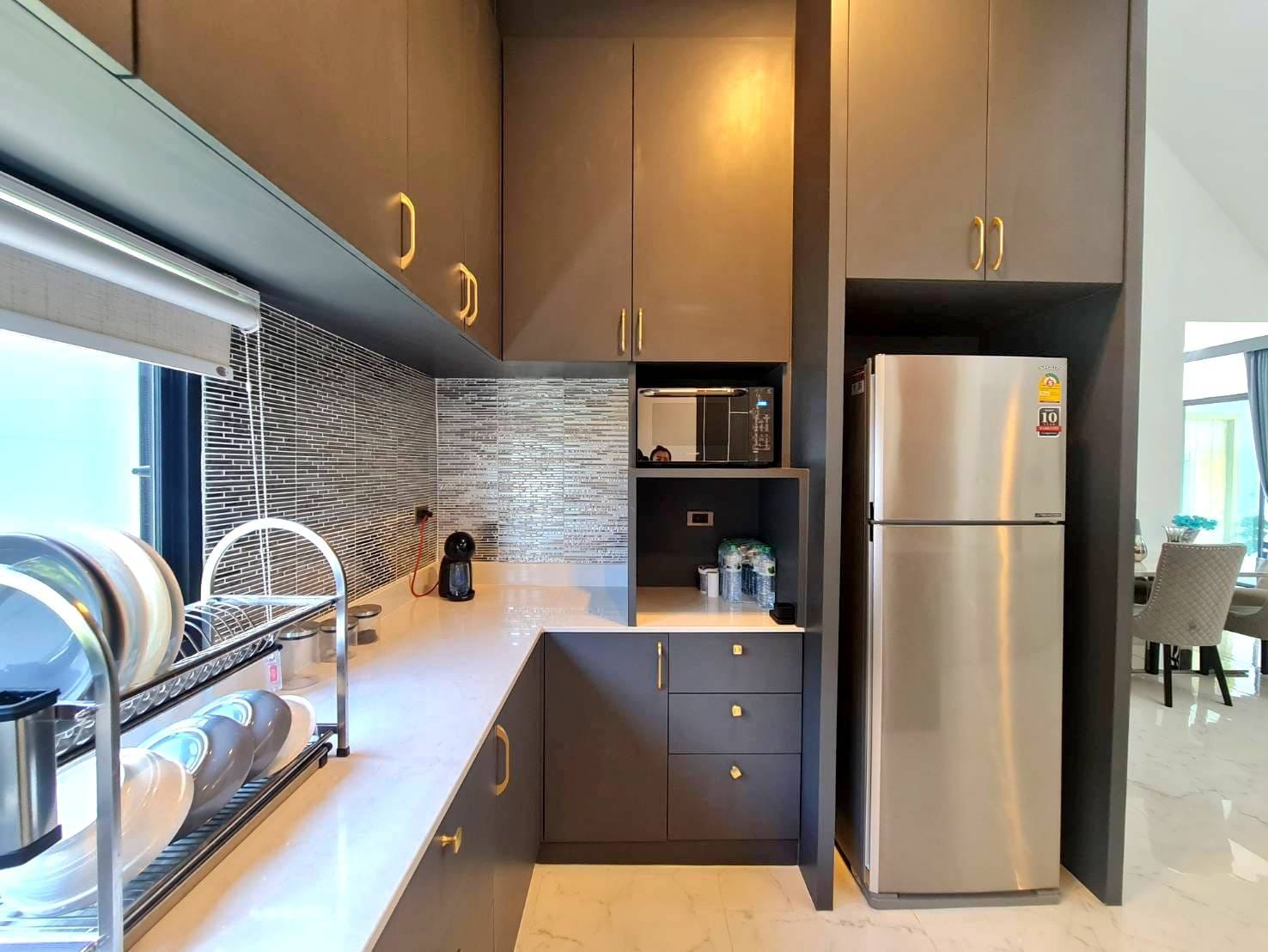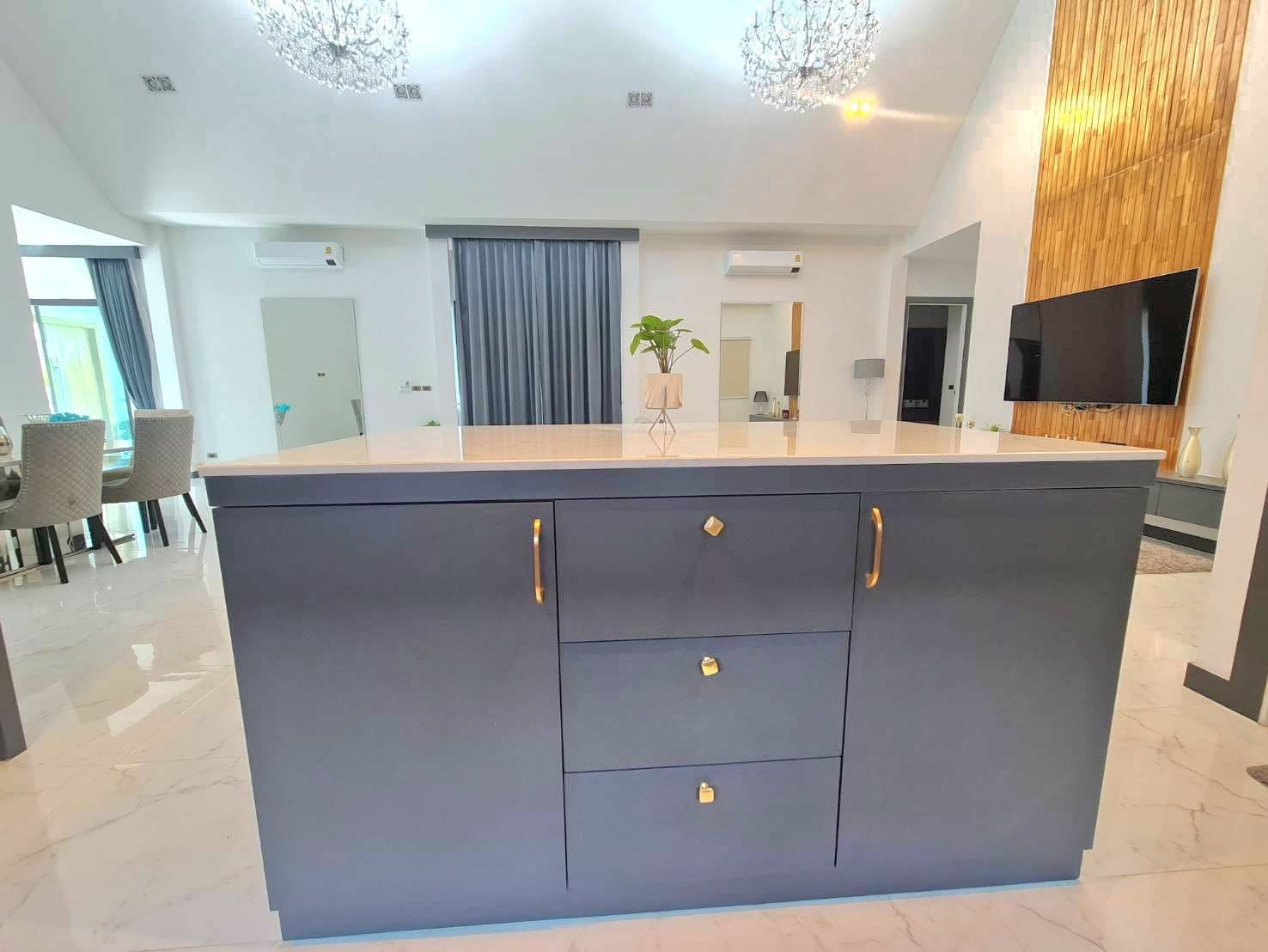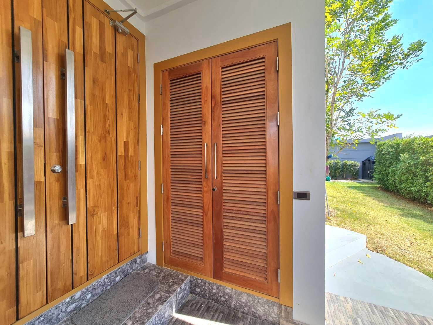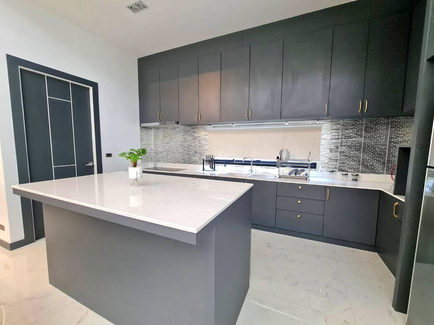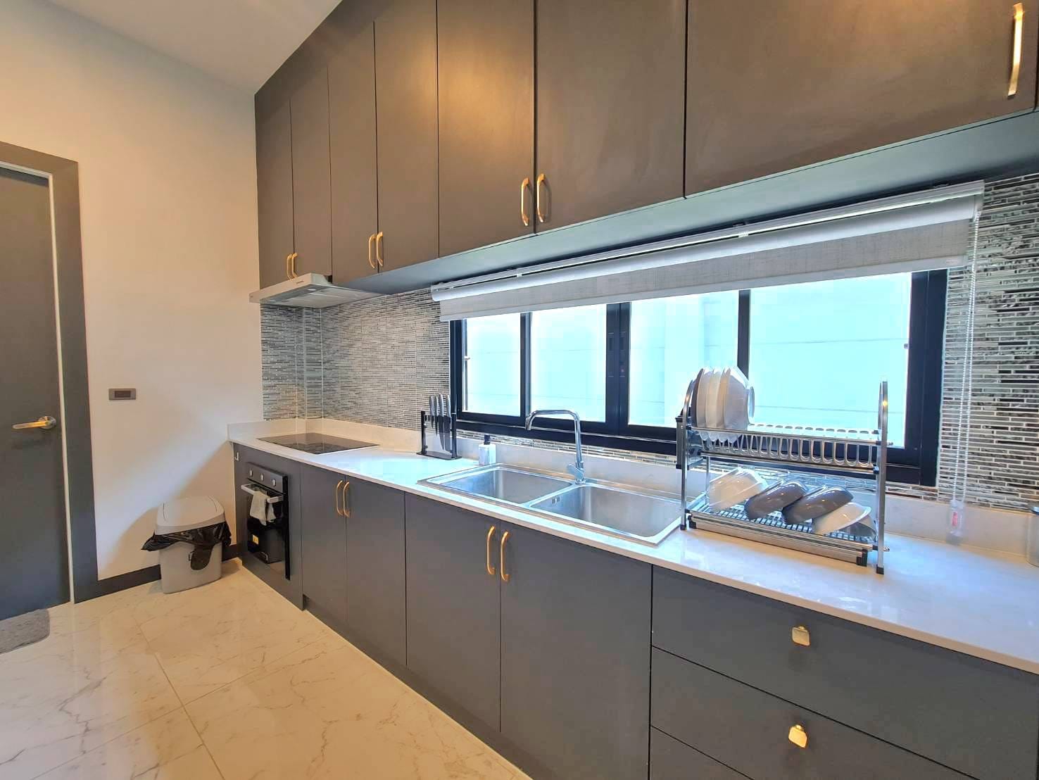 Baan Mae 1 Pool Villa, is a large land size of 544 Sq.m., Usage space 203 Sq.m., with 3 bedrooms, 3 bathrooms (all ensuite), and a walk-in closet in all bedrooms, Saltwater system swimming pool, pool size 8.3×4.2 meters with waterfall, Outside Counter Bar with Big screen TV remote control curtains, Included all furniture and Electrical Appliances.