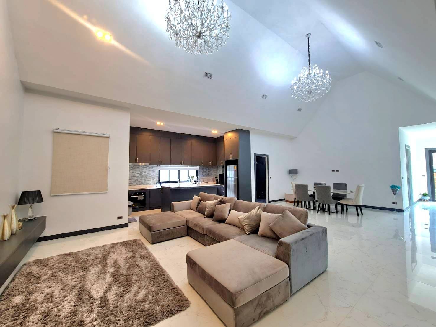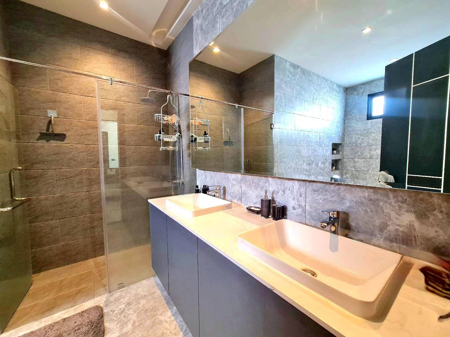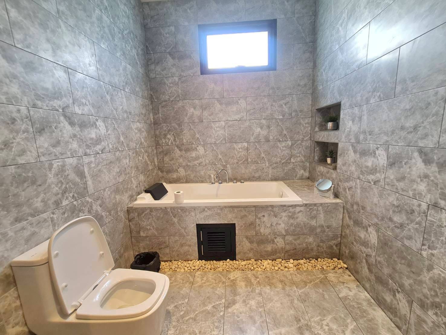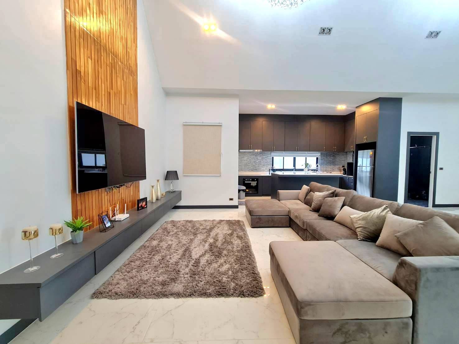 Baan Mae 1 Pool Villa, is a large land size of 544 Sq.m., Usage space 203 Sq.m., with 3 bedrooms, 3 bathrooms (all ensuite), and a walk-in closet in all bedrooms, Saltwater system swimming pool, pool size 8.3×4.2 meters with waterfall, Outside Counter Bar with Big screen TV remote control curtains, Included all furniture and Electrical Appliances.
