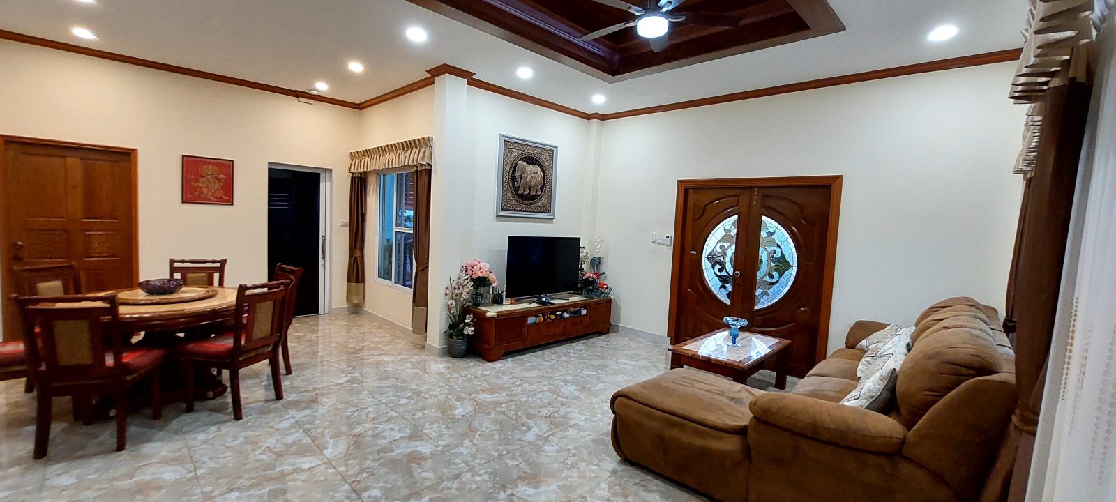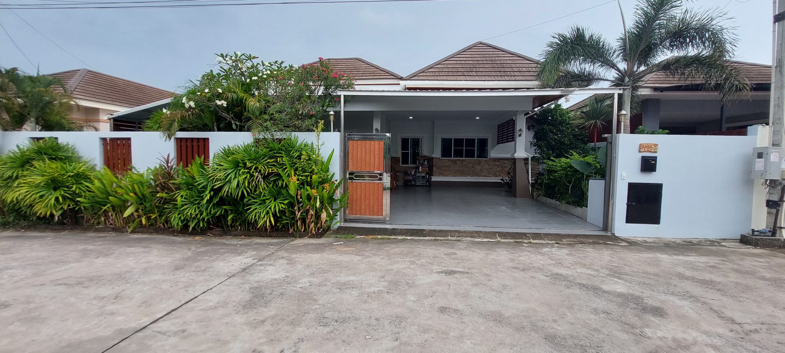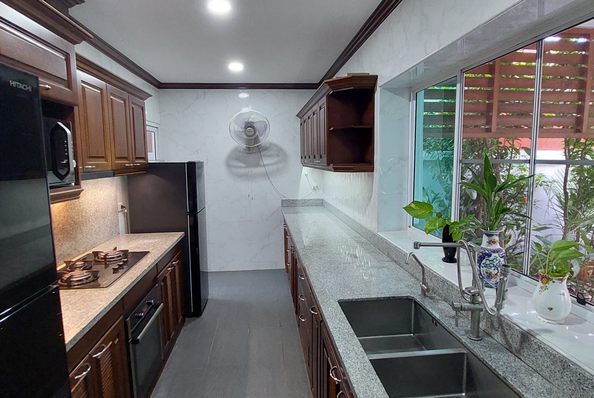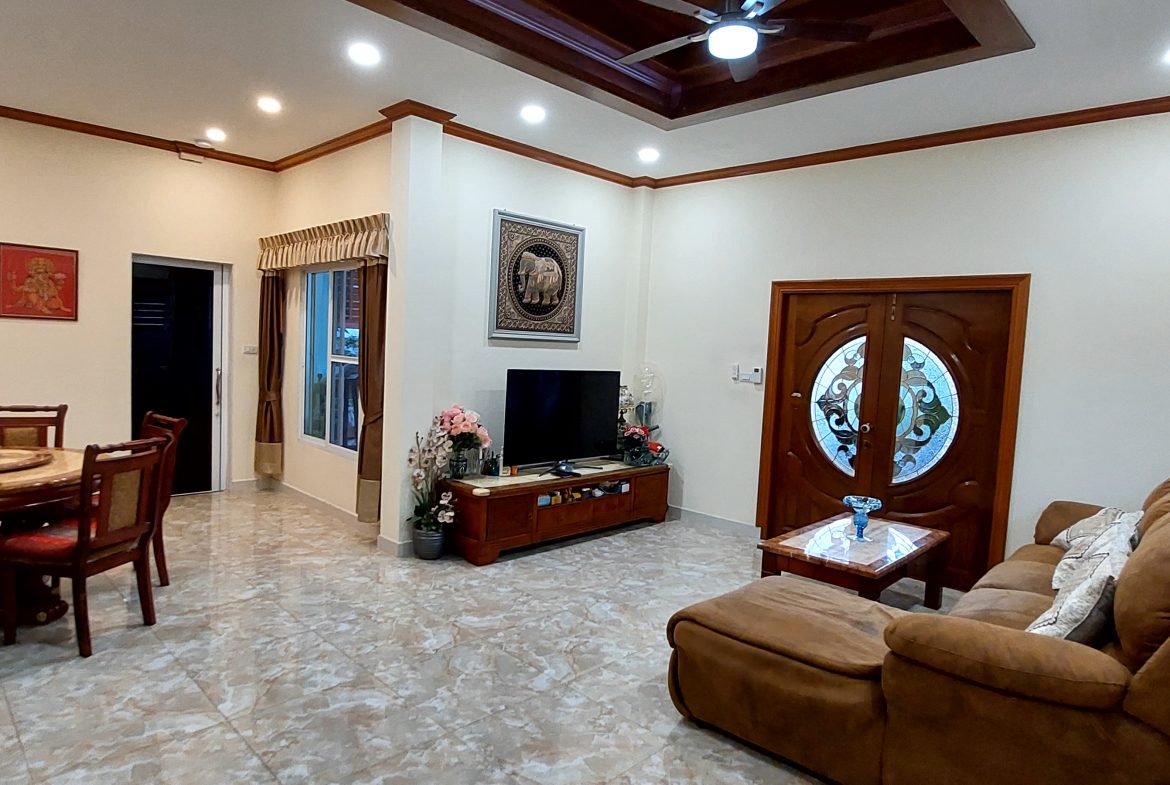 3 Bed, 2 Bath, Living Room, Office/Pool Room, European Style solid Oak Kitchen, Pool with Jacuzzi, Covered Car Parking for up to 4 cars. Inbuilt cupboards in the main bedroom, other furniture negotiable. 8 years old and built to western standards with high-quality fittings and maintained to high western standards. Pool 3.5/4.5m wide and 7m long with turquoise tiling and sandstone steps.