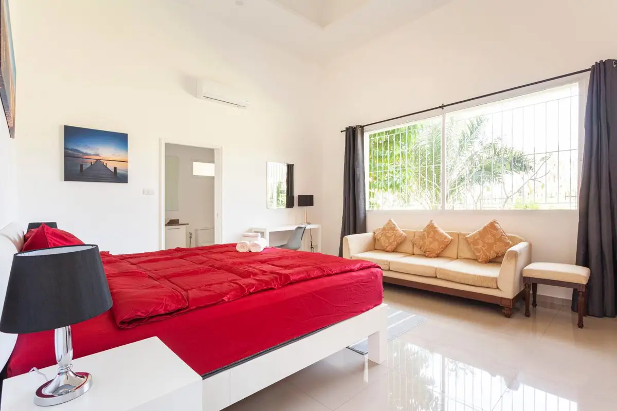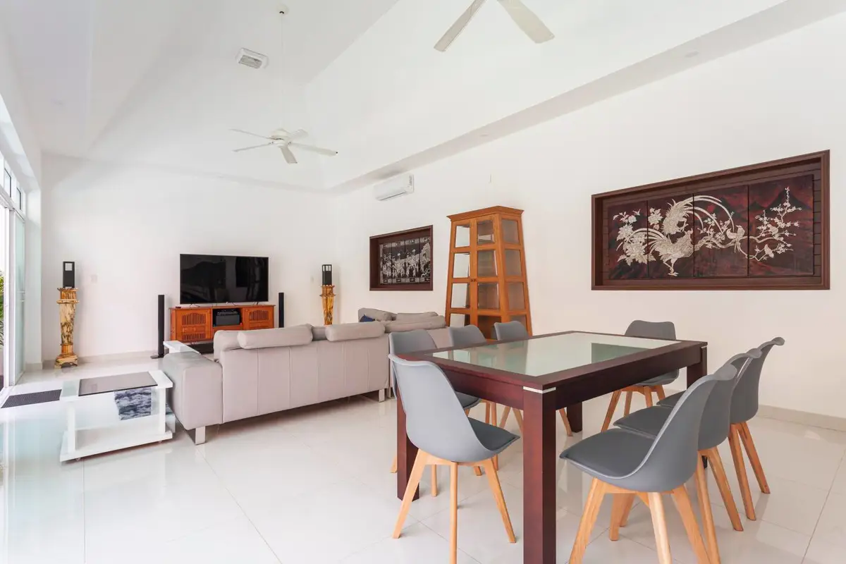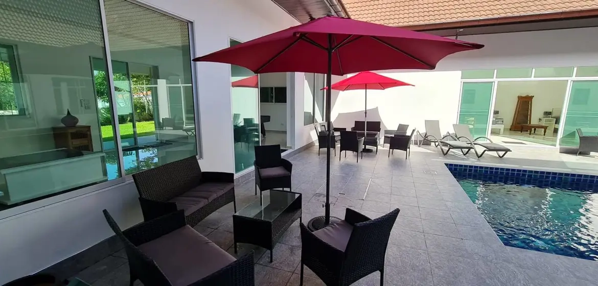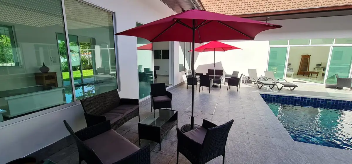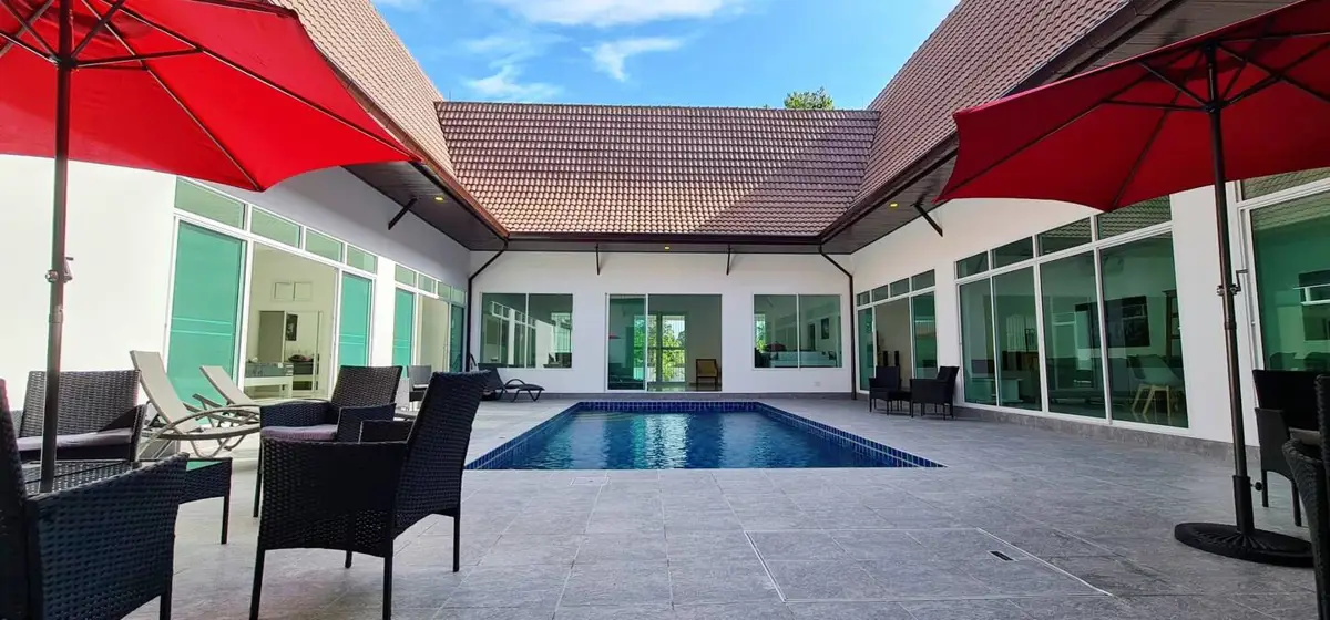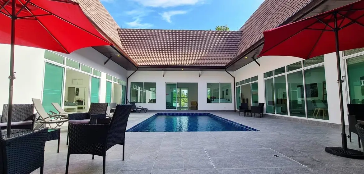 Size and Layout: The Villa boasts six bedrooms and an impressive total living area of 380 square meters situated on a substantial 1 Rai (1600 square meters) plot of land. The atrium-style architecture ensures a spacious and open feel throughout the property.