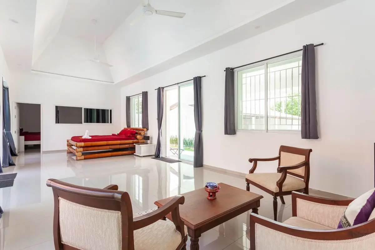 Indoor-Outdoor Living: The Villa promotes an indoor-outdoor lifestyle with several outdoor sitting areas accessible via large sliding doors. This setup ensures a seamless transition between the interior courtyards, garden-facing areas, and the villa’s living spaces, enhancing the relaxation experience.
