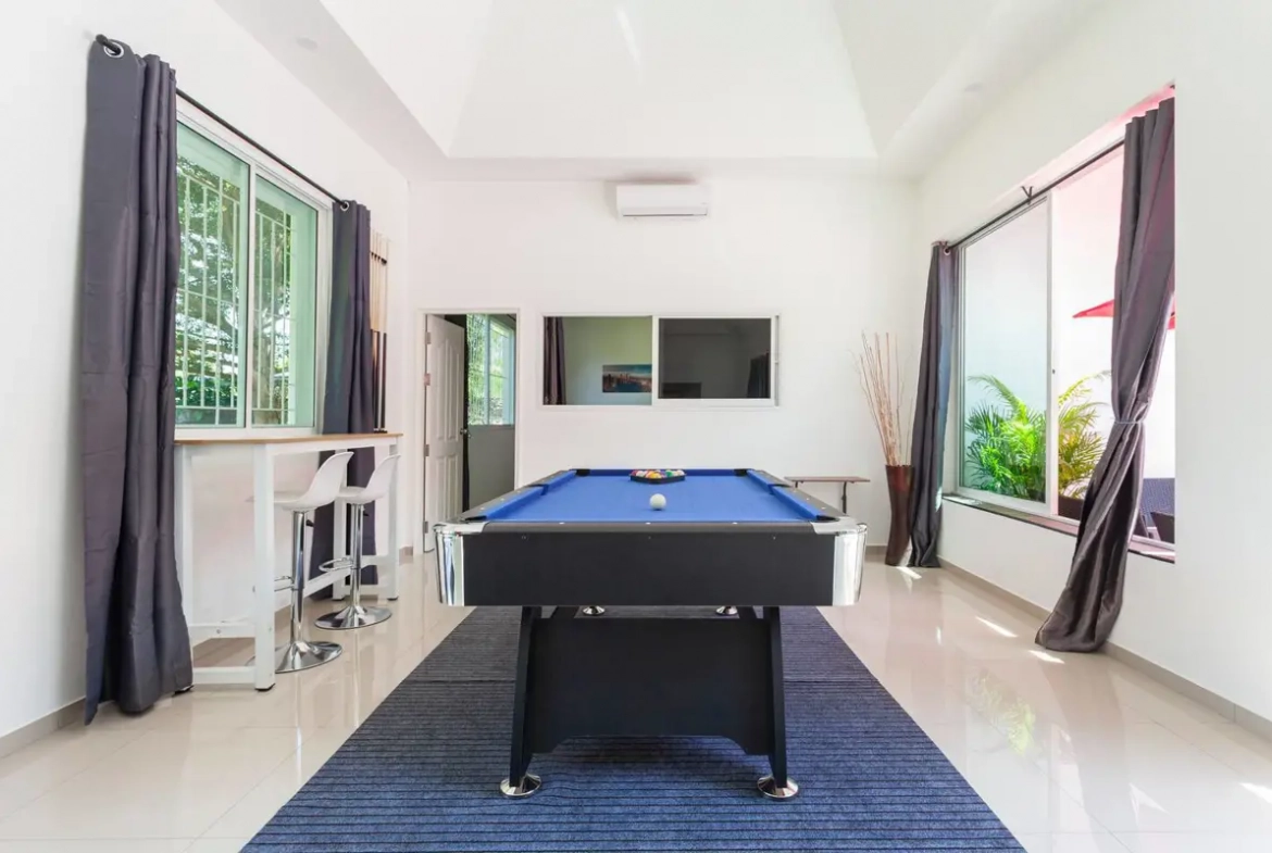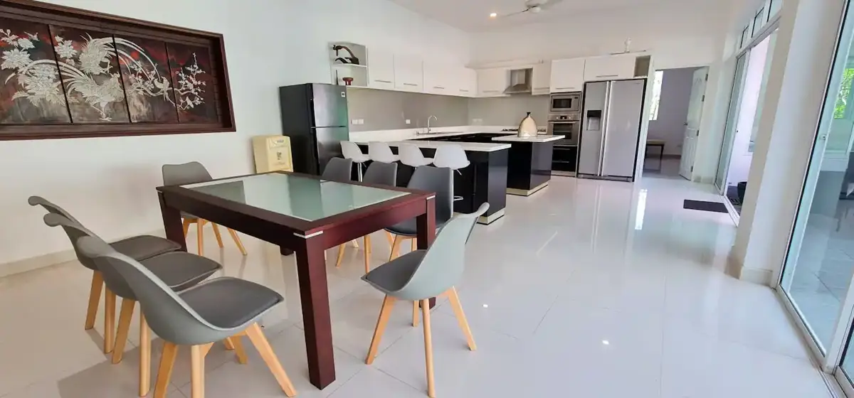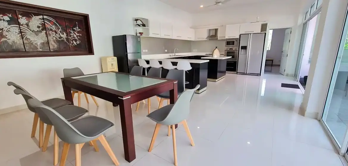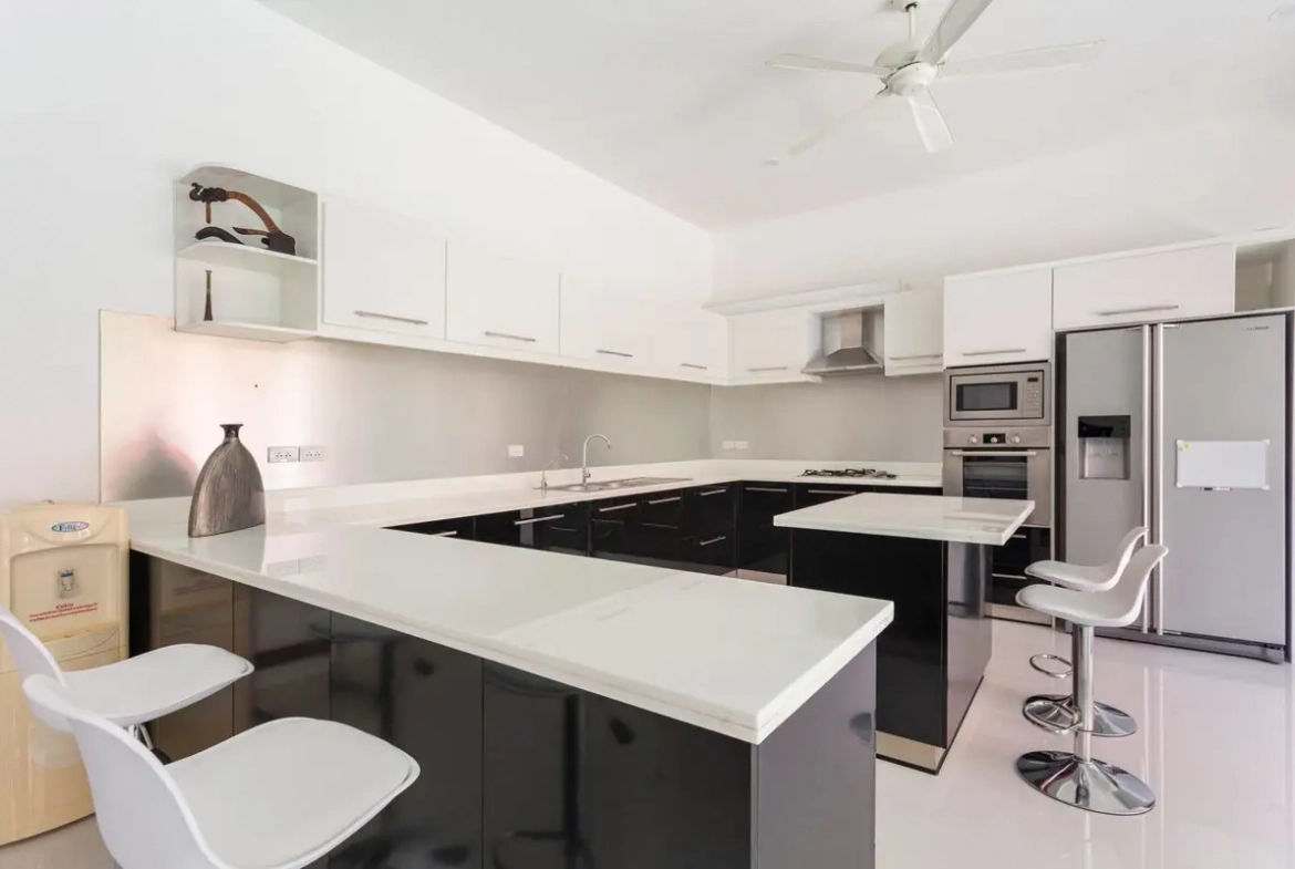 Gigantic Kitchen: The Villa boasts a generously sized kitchen that’s both practical and ideal for culinary enthusiasts. It offers ample counter space, allowing for easy meal preparation. The layout caters to both professional chefs and hobbyists, enabling multiple people to work on food preparation simultaneously.