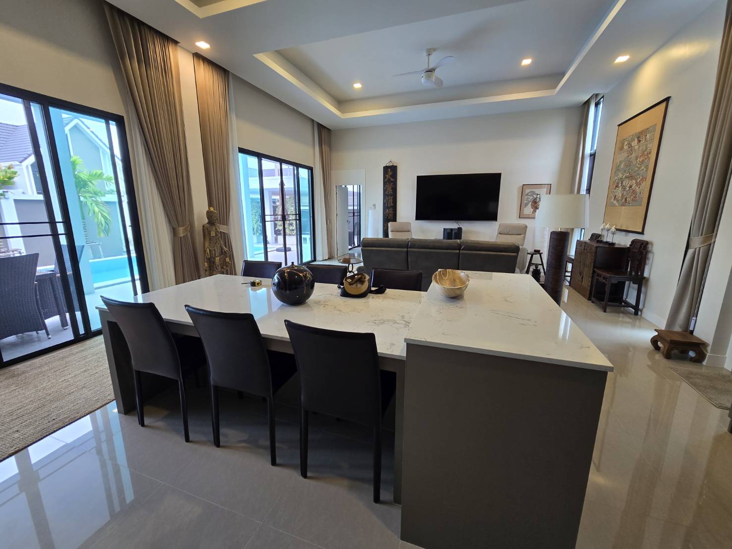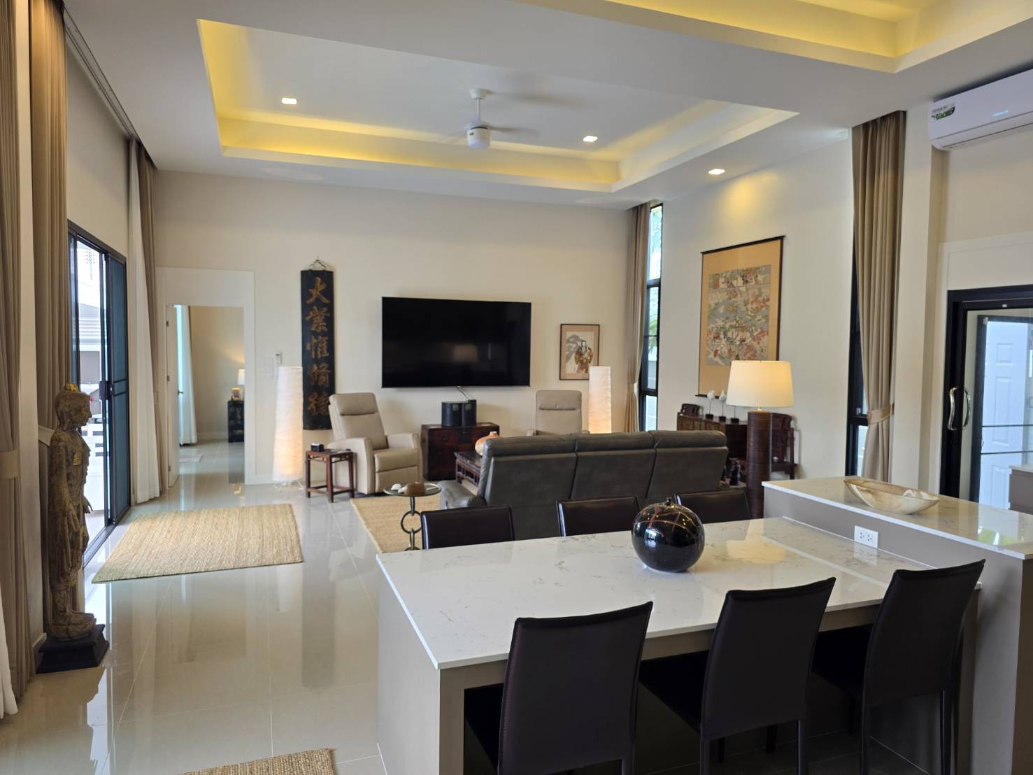 Everything in the house is conveyed except the Asian furniture, artwork, and accessories.