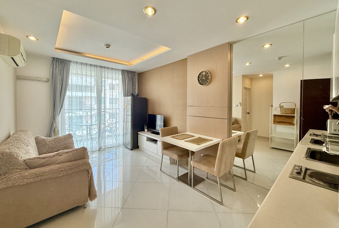 This well-designed 1-bedroom unit is perfect for individuals or couples seeking an affordable yet stylish living space in the heart of Jomtien. Positioned on the 4th floor, the condo offers a pleasant city view, combining comfort and convenience.