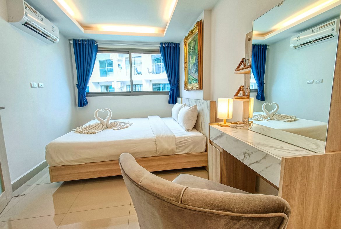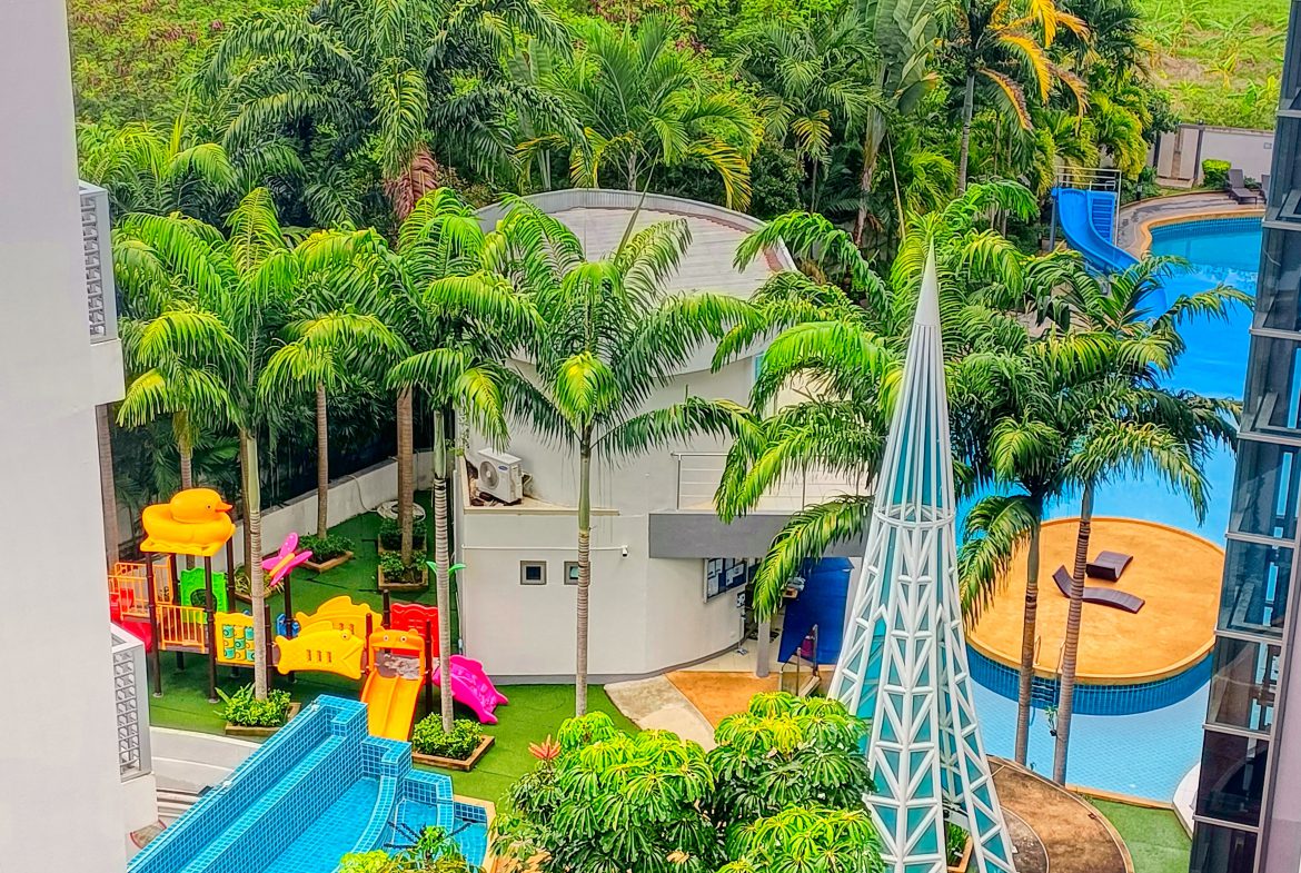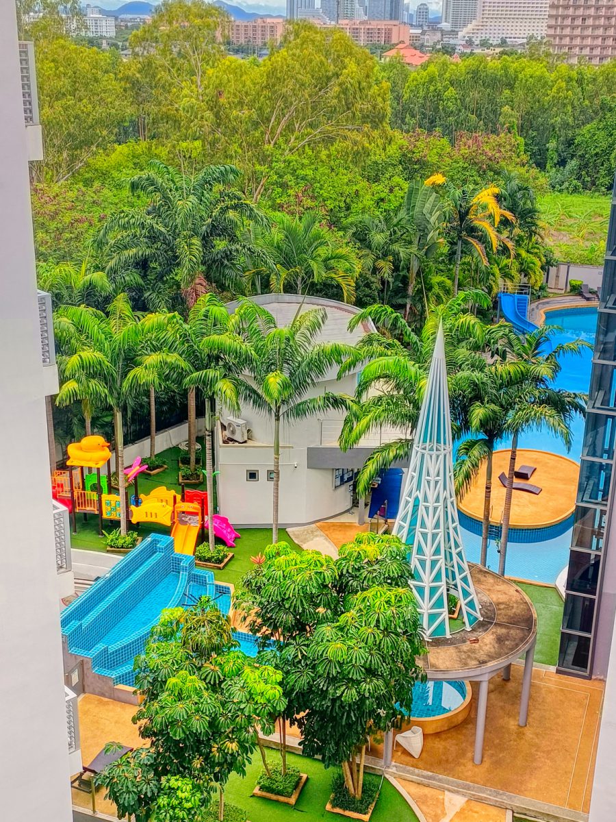 This pool-view unit offers an affordable opportunity to own property in a well-known resort-style condominium in Pattaya.
