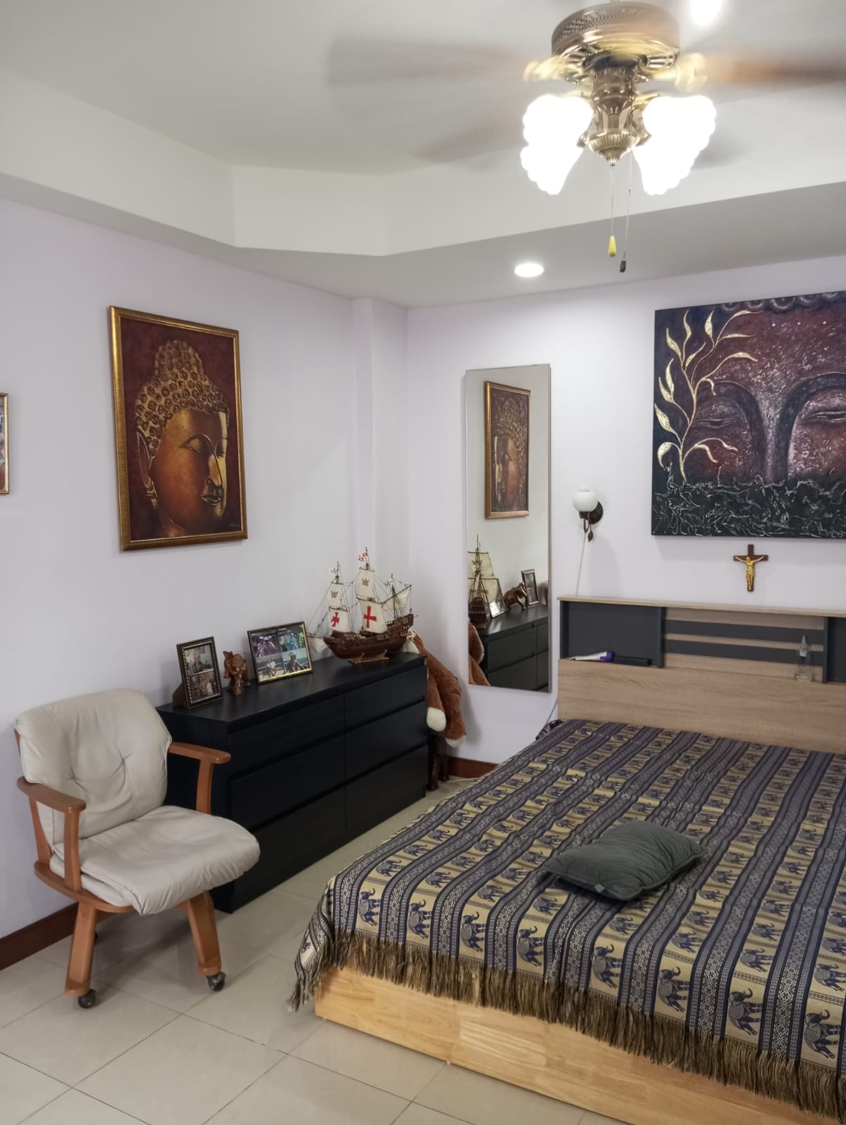 “It is a spacious 1-bedroom, 1-bathroom condo in a great location in Pratumnak, just a few hundred meters from the beach. The condo is situated on the 3rd floor of a low-rise building with sea views. It offers excellent value for money, is clean and tidy, and comes fully furnished. This condo is available for sale at the moment.”