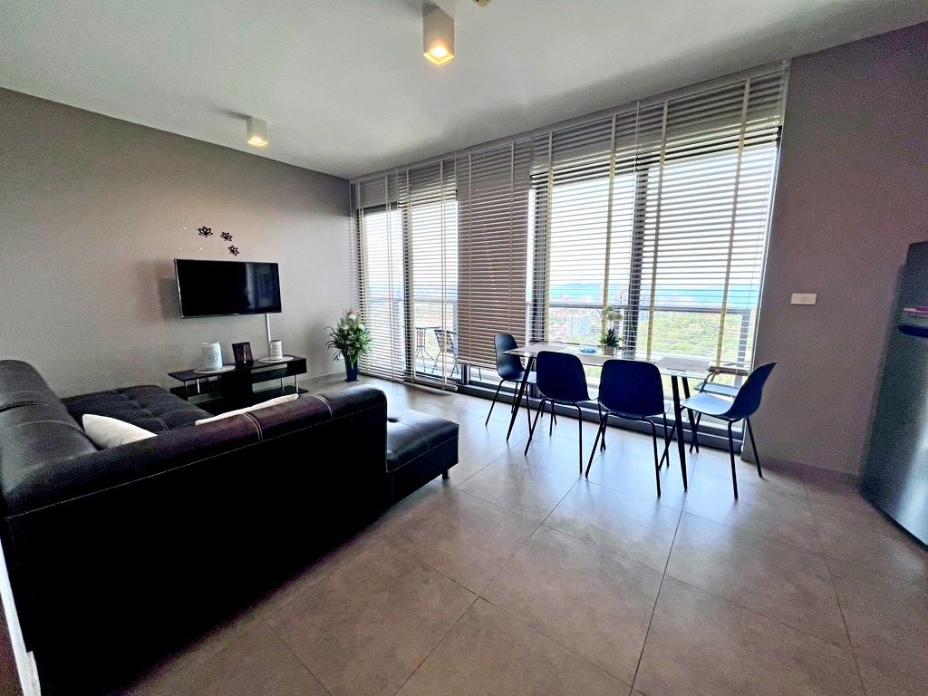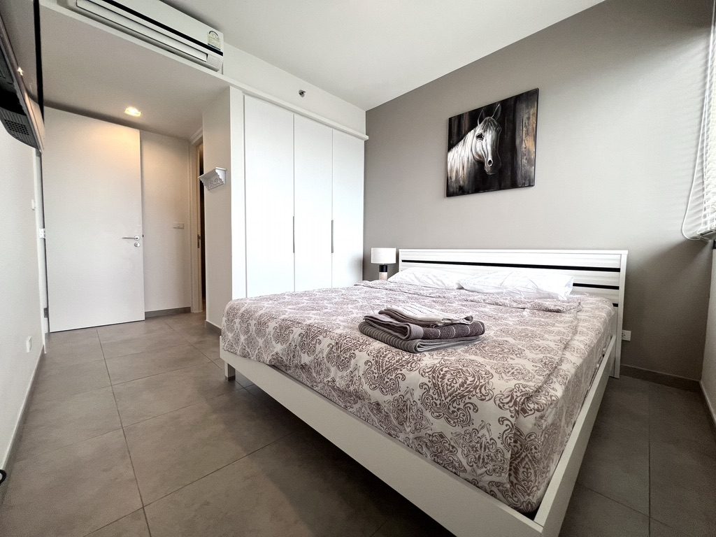 Unixx has exceptional amenities 2 swimming pools, one with a climbing wall, a huge water slide, and BBQ areas, plus a multi-sport lawn, jogging track, boules court, putting green, indoor air-conditioned (with free Wi-Fi and outdoor gyms, lots of covered, secure parking, sky gardens on the 37-floor laundry room, mini-mart, restaurant, free shuttle bus, large, comfortable lobby with free Wi-Fi, concierge desk, professional property management, etc. It is on a huge 7 rai site in a great location on the side of Pratumnak next to the park and close to downtown, Walking St, etcetera. Here we offer a stunning 2-bedroom apartment with exceptional views, located on the 7th floor. The apartment is currently rented until March ’23. Please allow 24 hours advance notice for inspection. Tenant can move out within 1 month notice if needed.