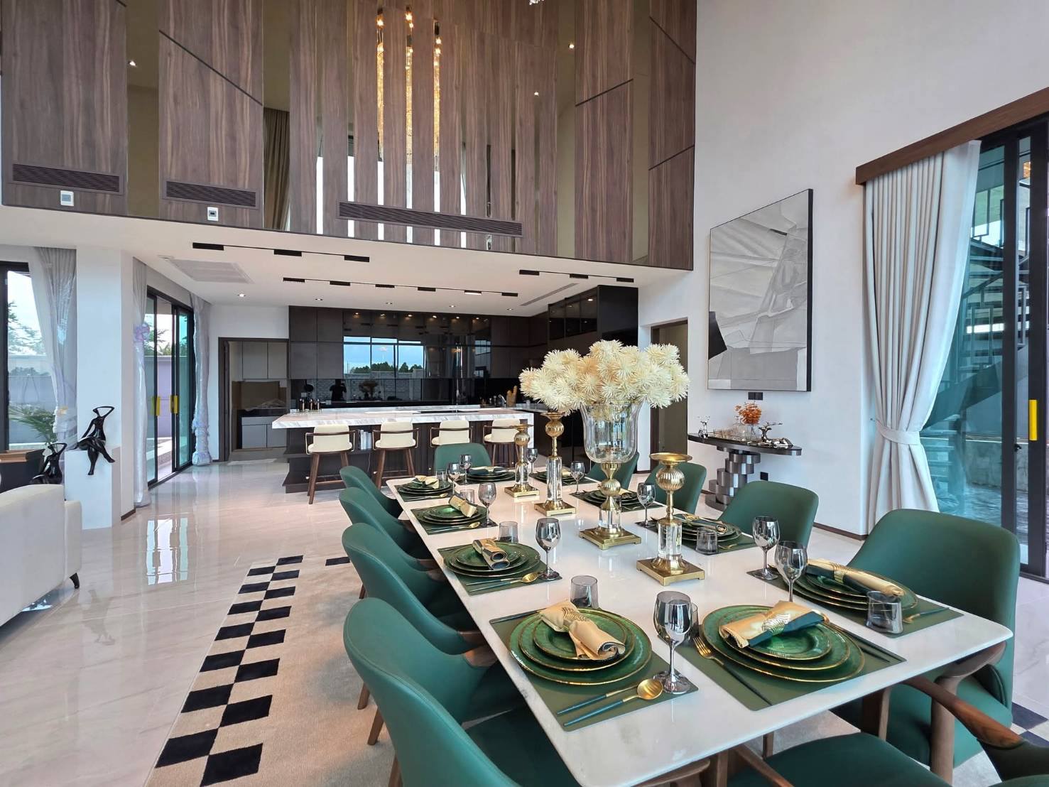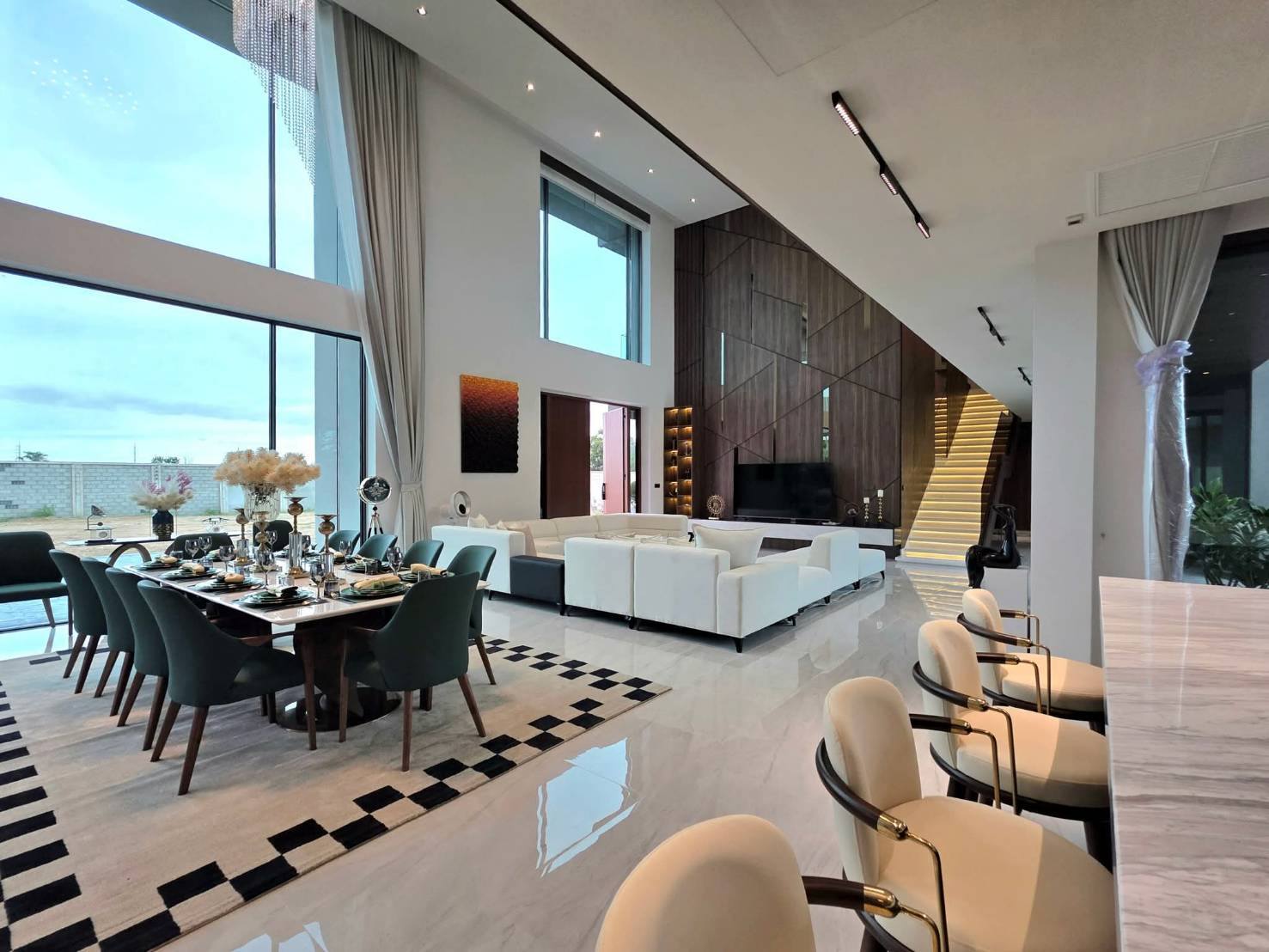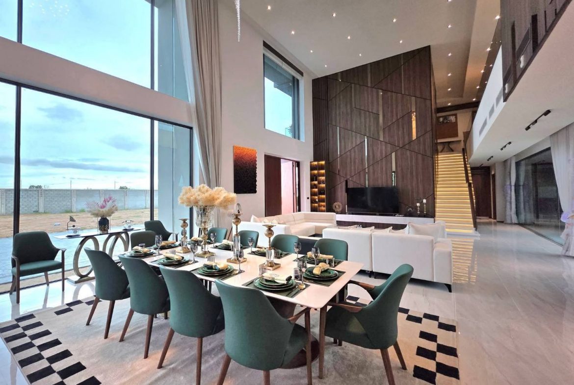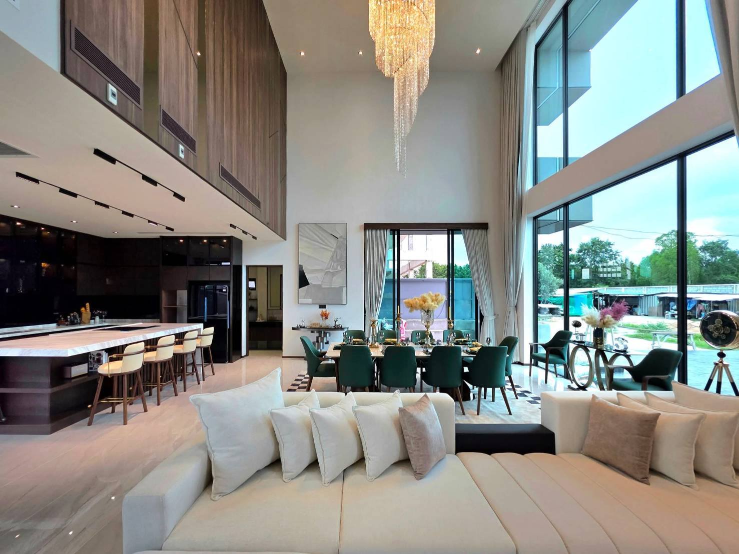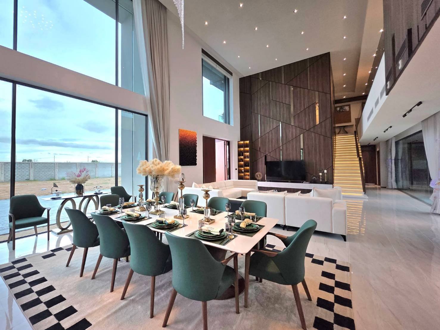 - 𝙂𝙧𝙖𝙣𝙙 𝙃𝙖𝙡𝙡 𝙇𝙞𝙫𝙞𝙣𝙜 𝙍𝙤𝙤𝙢 – Double-volume ceiling soaring up to 8 meters.