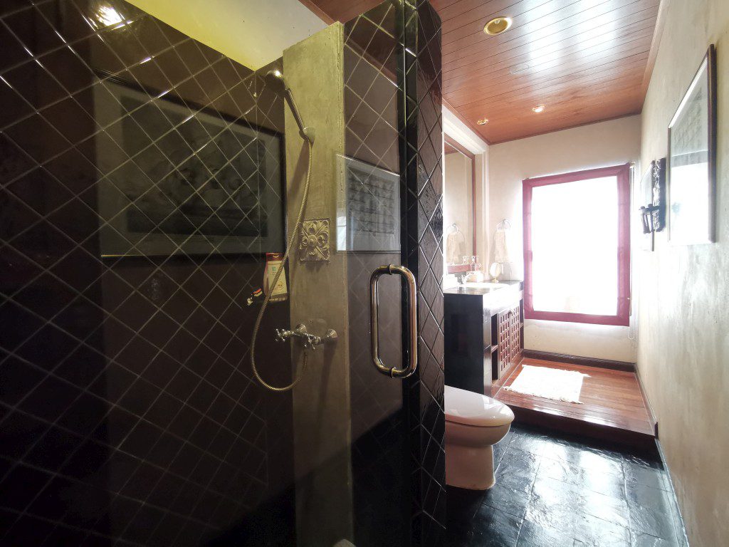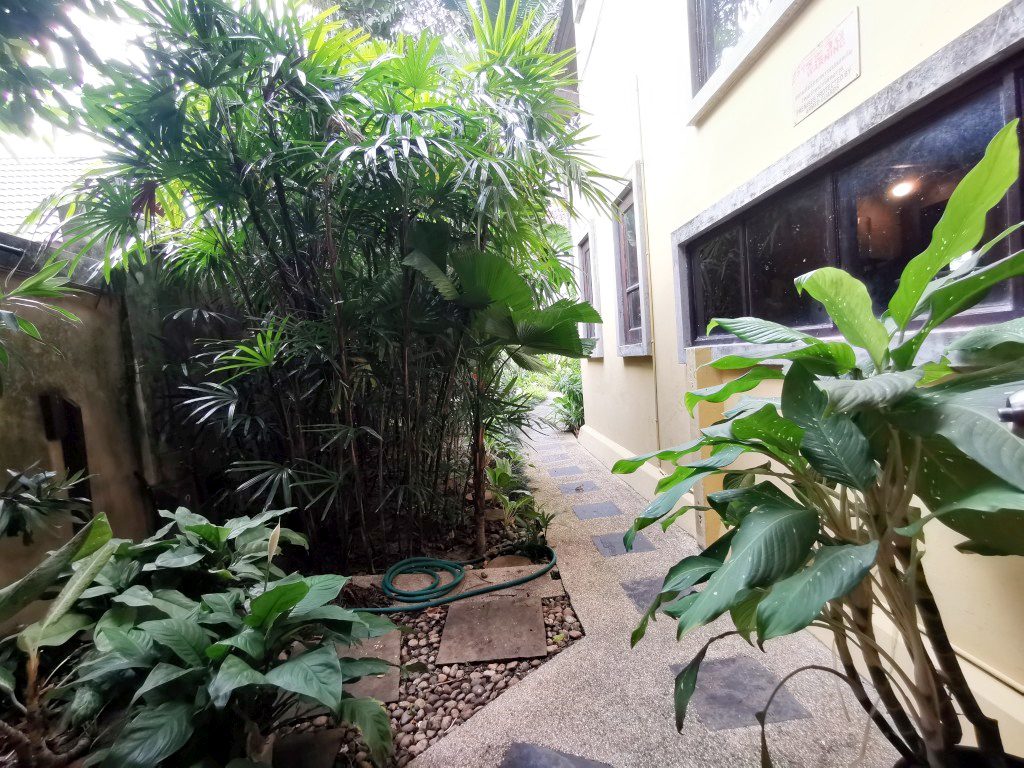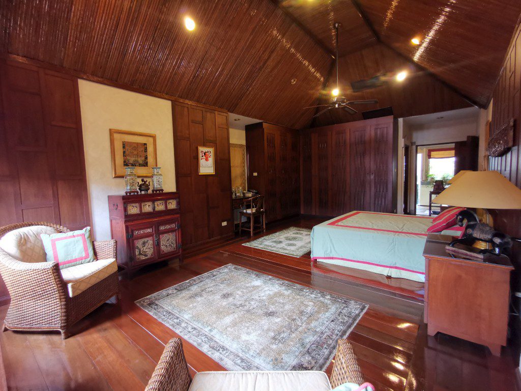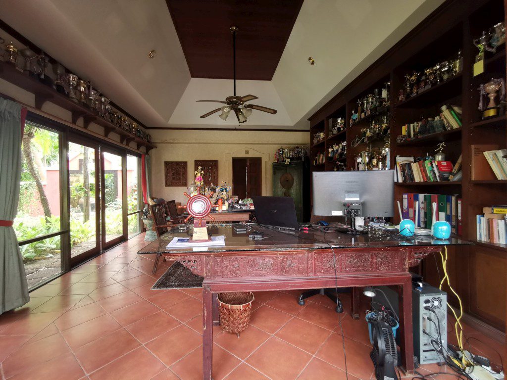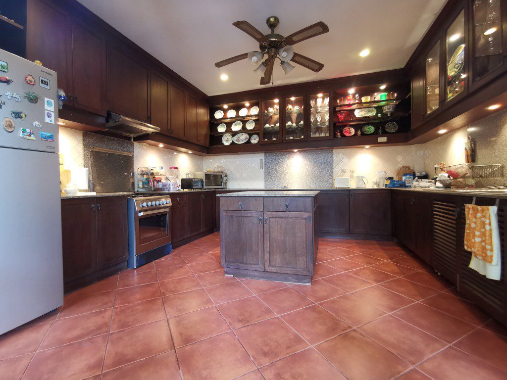 There is a security guard 24 hours in the village. Car park, maid room with bathroom, storage room, outside Thai kitchen, mid-size a garden, a small pool and there is space to build a swimming pool.