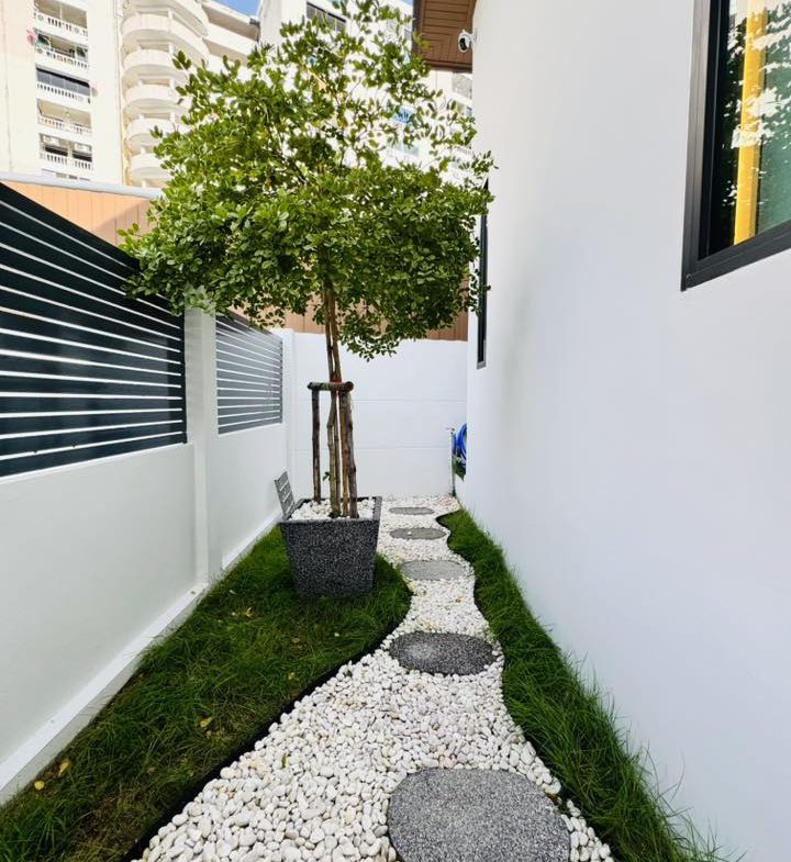 This modern pool villa for sale in Pattaya is set in the heart of Central Pattaya, Soi Chaloem Prakiat 10/1. Combining privacy with convenience, the villa is within easy reach of shopping malls, restaurants, international schools, and major transport links—perfect for city living with a touch of resort-style luxury.