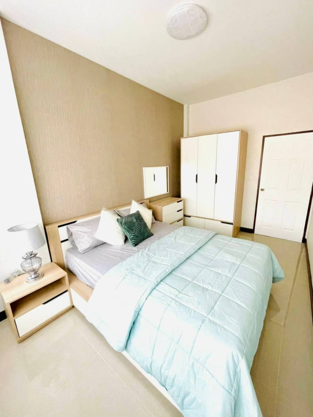Newly built townhome in Ponthep Townhome 9/1 project for sale. The house provides a sizeable 2 cars parking space, so there will be no problems of argument about insufficient space with your neighbors anymore. This townhome sells unfurnished in the area of 23 square wah with 3 bedrooms 3 bathrooms and a luxury kitchen. However, you will get 3 air conditions or curtain all around the house that is included free when you buy the house. The project offers key card access control, 24-hour security, CCTV around the project, communal garden, and housekeeper. This hometown is located in Soi Farm Jorakhe 10, and it is nearby tourist attractions and international school like Regents International School. Therefore, you should not MISS this house as it is affordable and well-located!